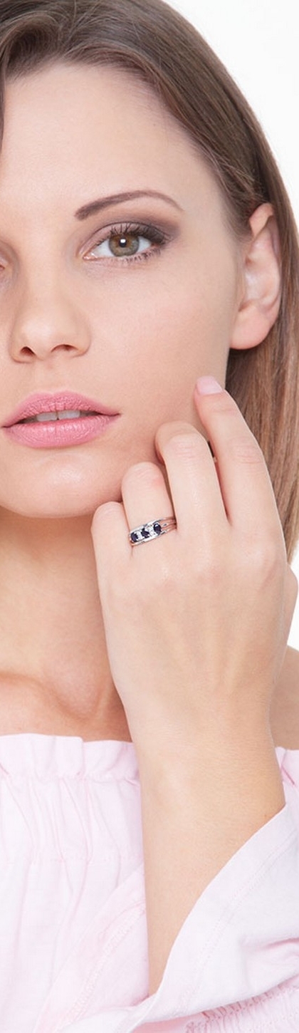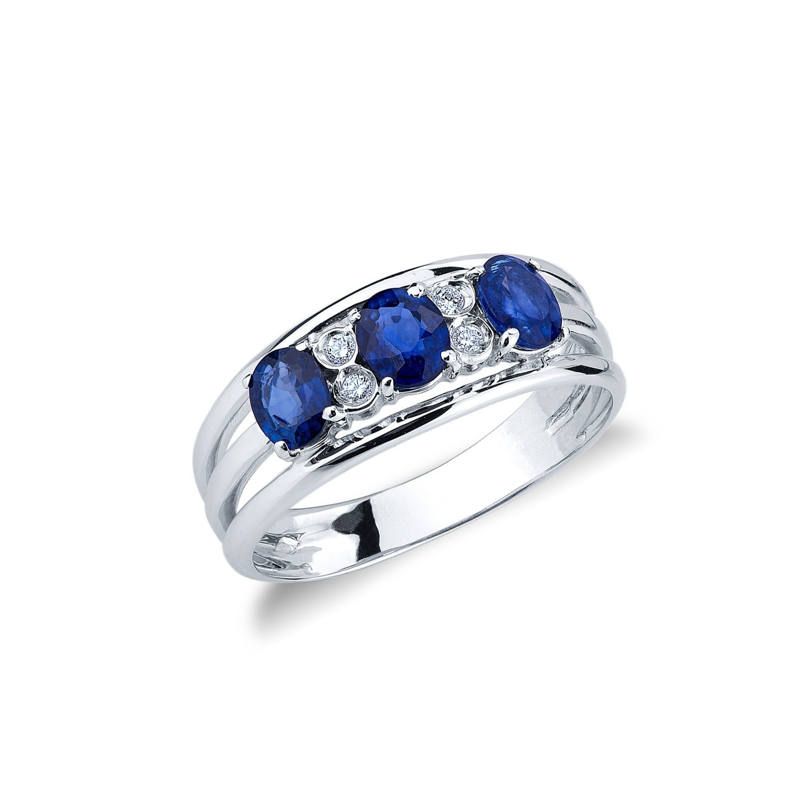 Weißgold Ring Damen mit 3 Saphiren und Diamanten