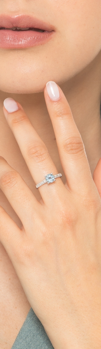Aquamarin Solitär Ring Weißgold 750