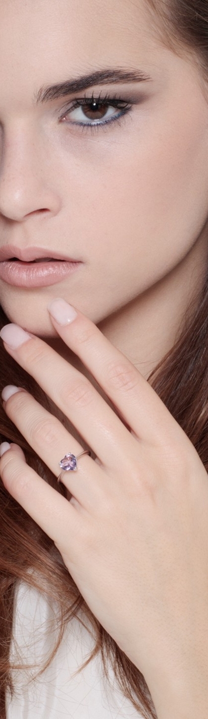 Herzring mit Amethyst aus Weißgold 18K