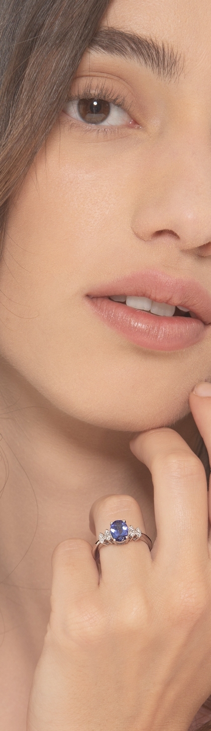 Tansanit Ring Weißgold mit Brillanten