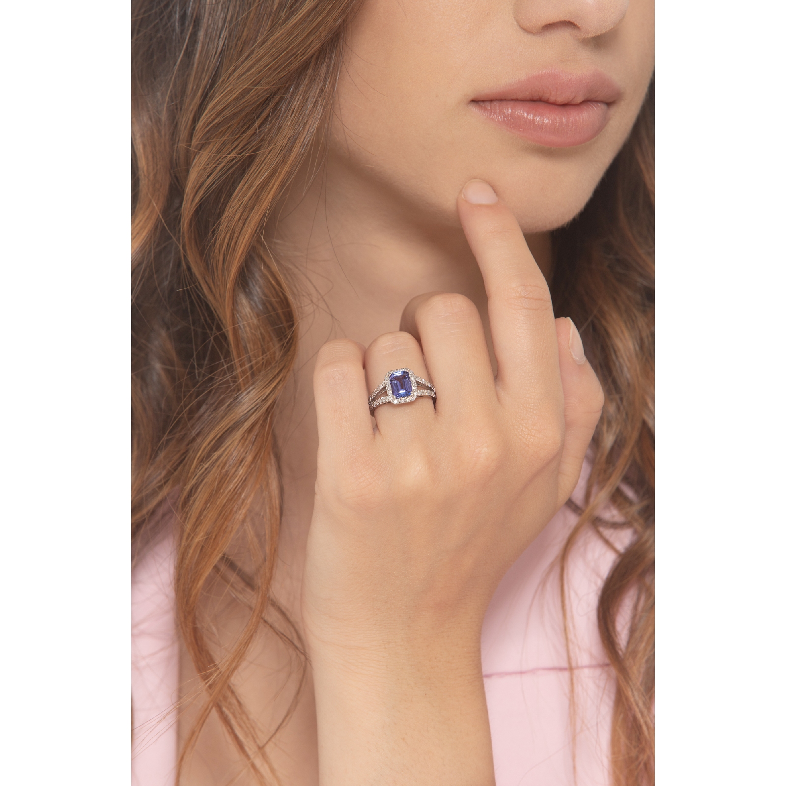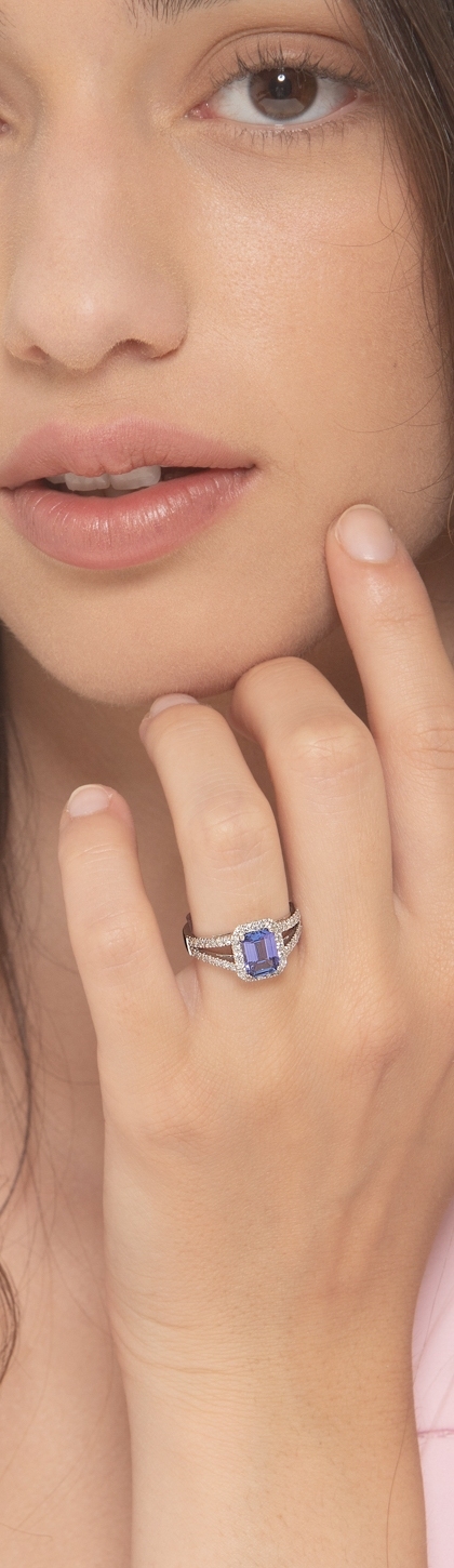 Weißgold Ring Damen mit Diamanten und Tansanit