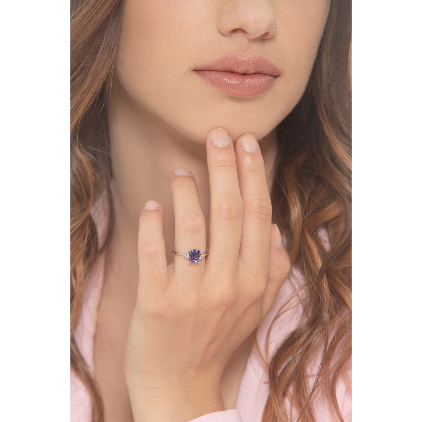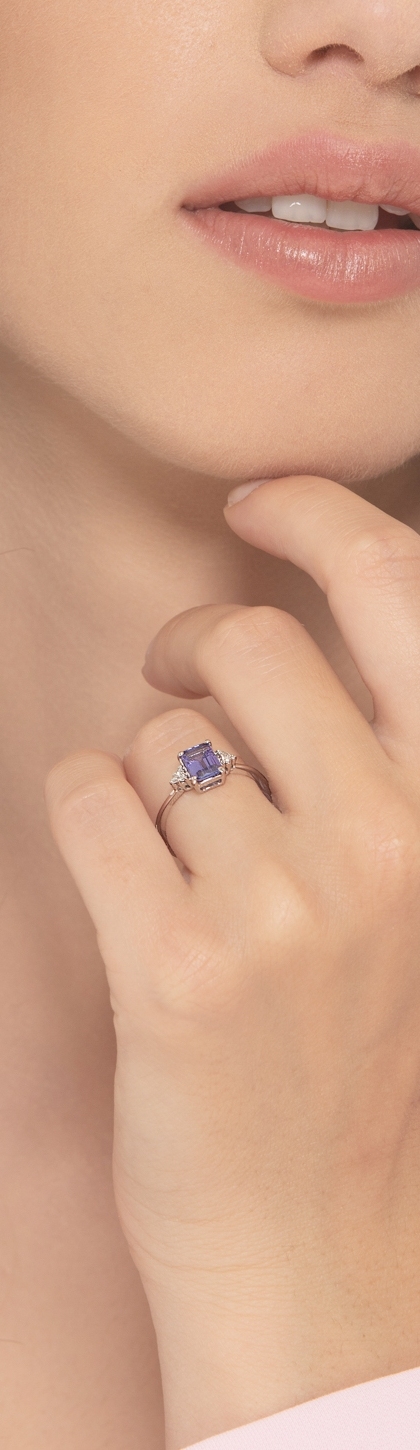 Weißgold Ring Damen mit reckteckigem Tansanit und Diamanten