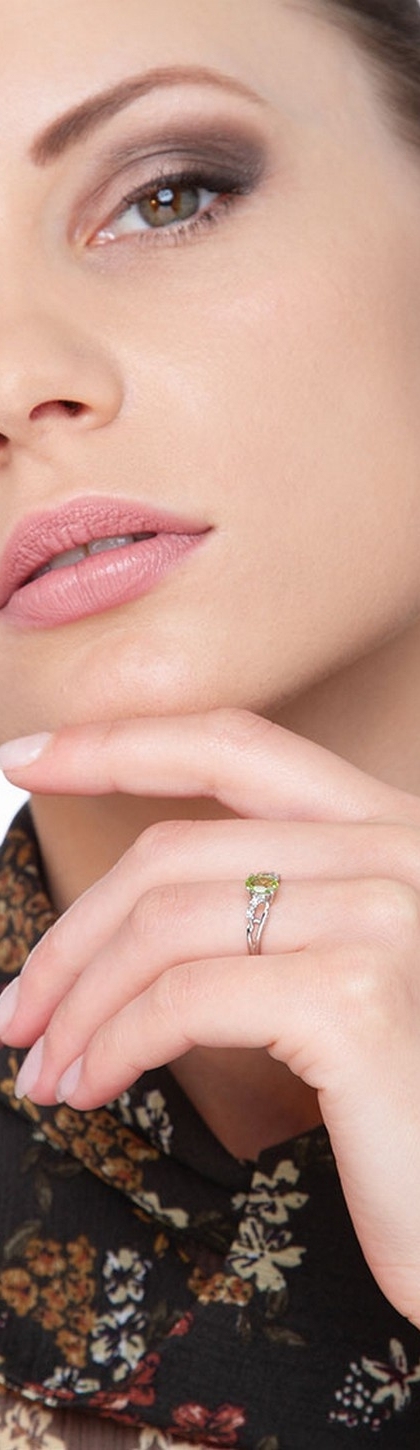 Weißgold Ring mit Peridot-Stein und Brillanten