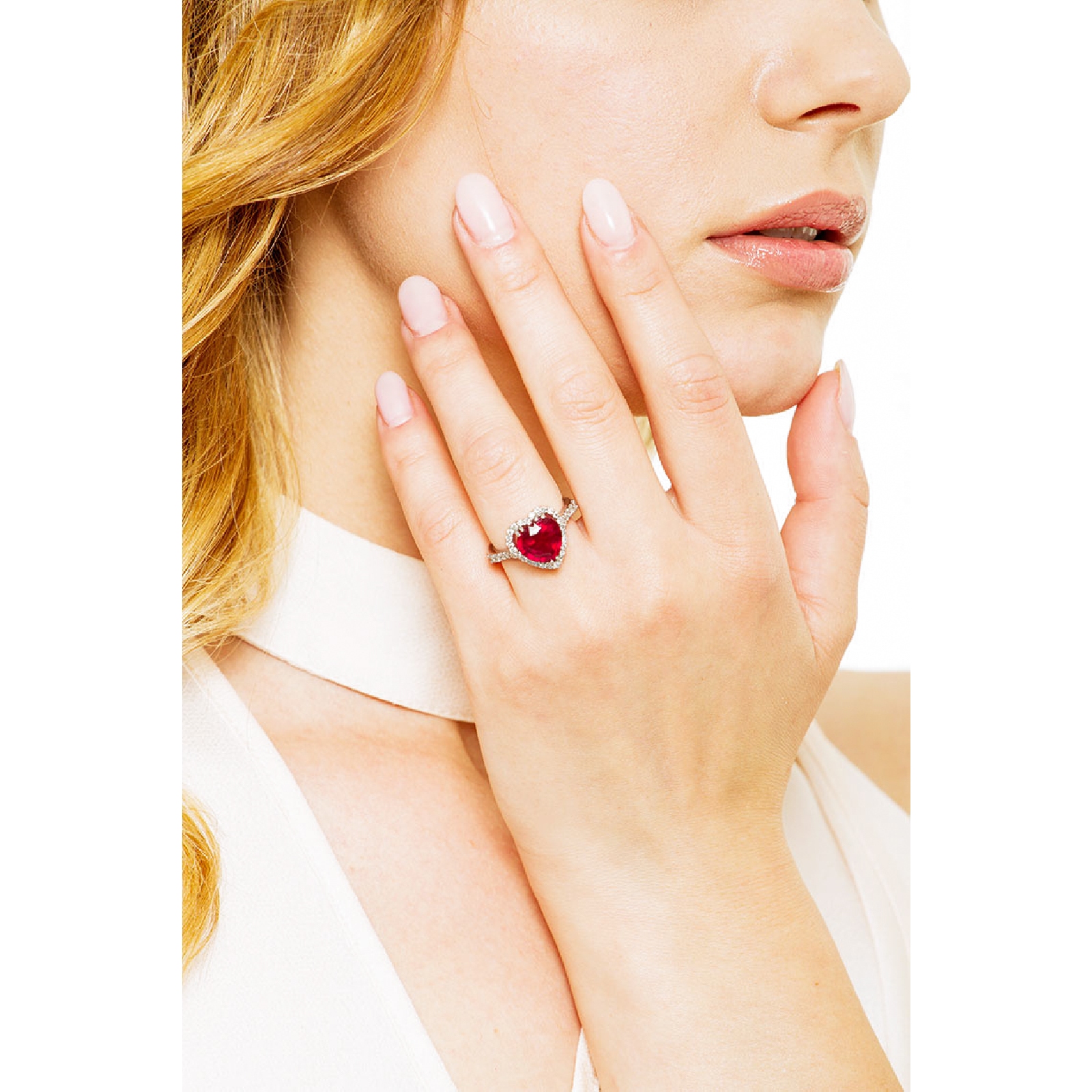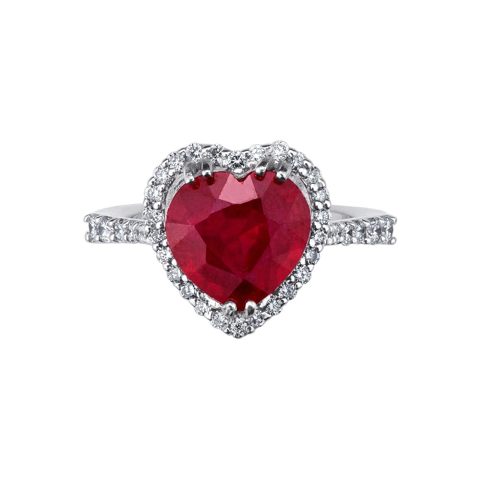 18k Weißgold Herzring mit Rubin und Diamanten