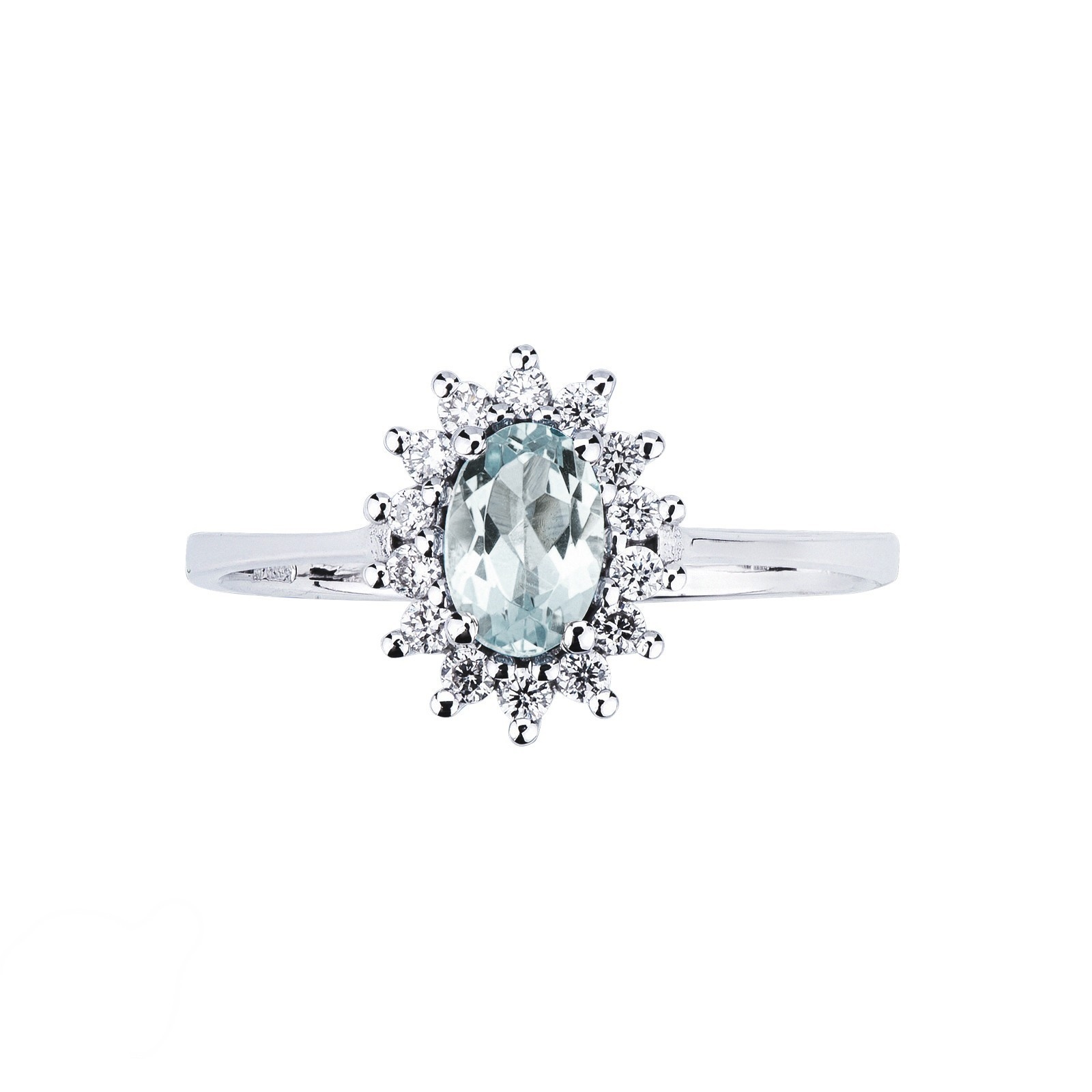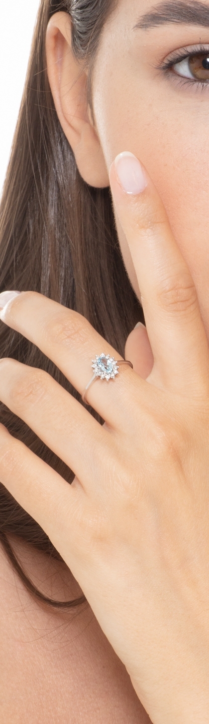 Aquamarin Damenring mit Diamanten Weißgold 18k