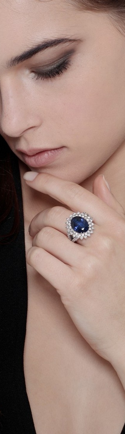 Blauer Saphir Halo Ring Weißgold mit Diamanten