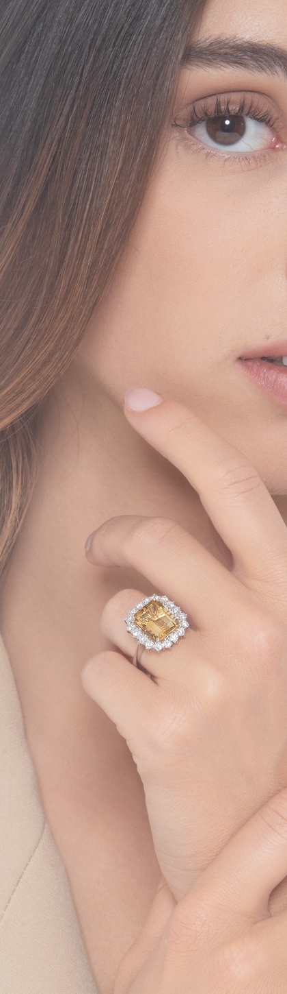 Halo Citrin Ring mit Brillanten aus Weißgold