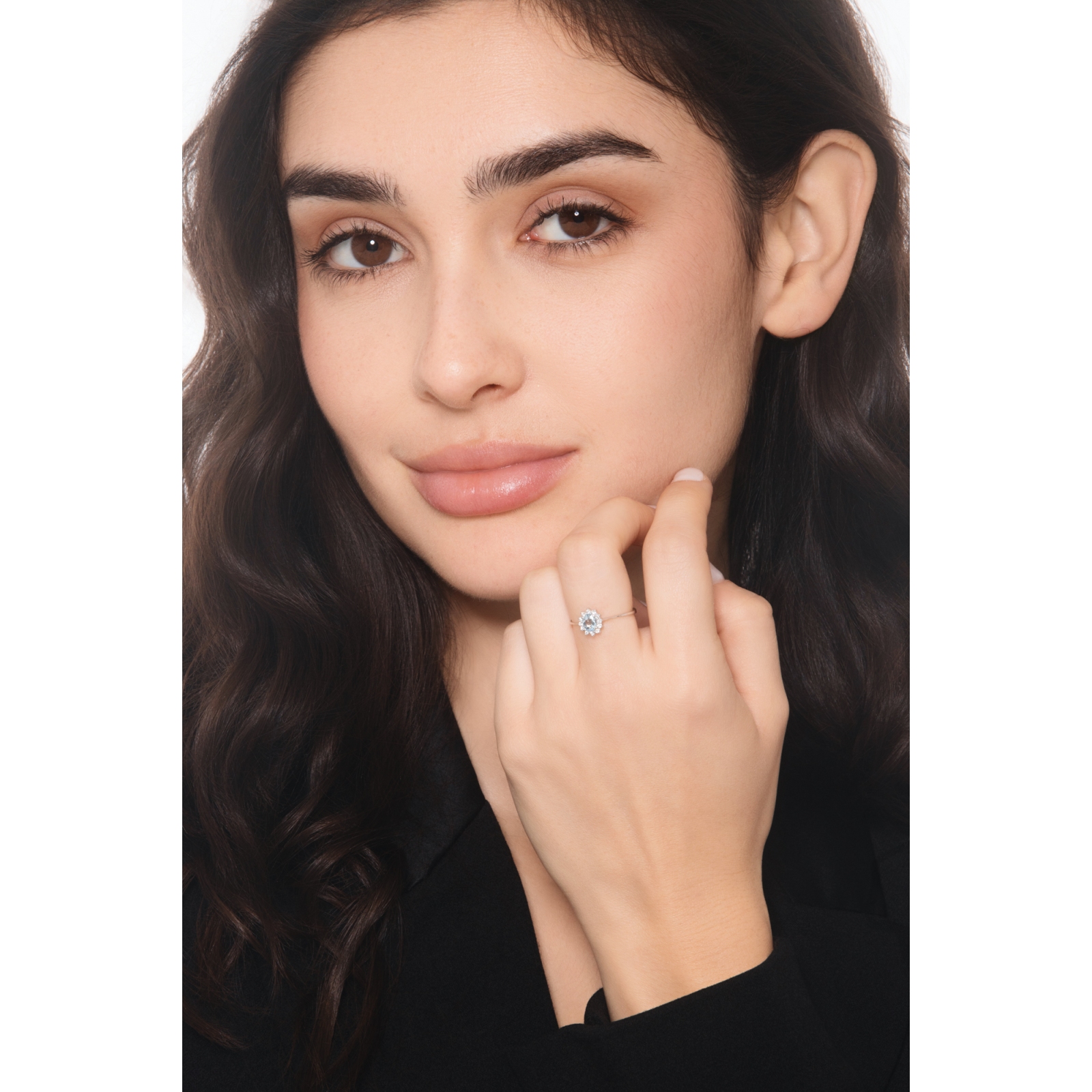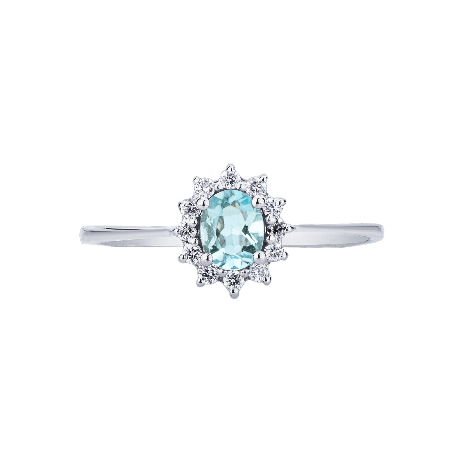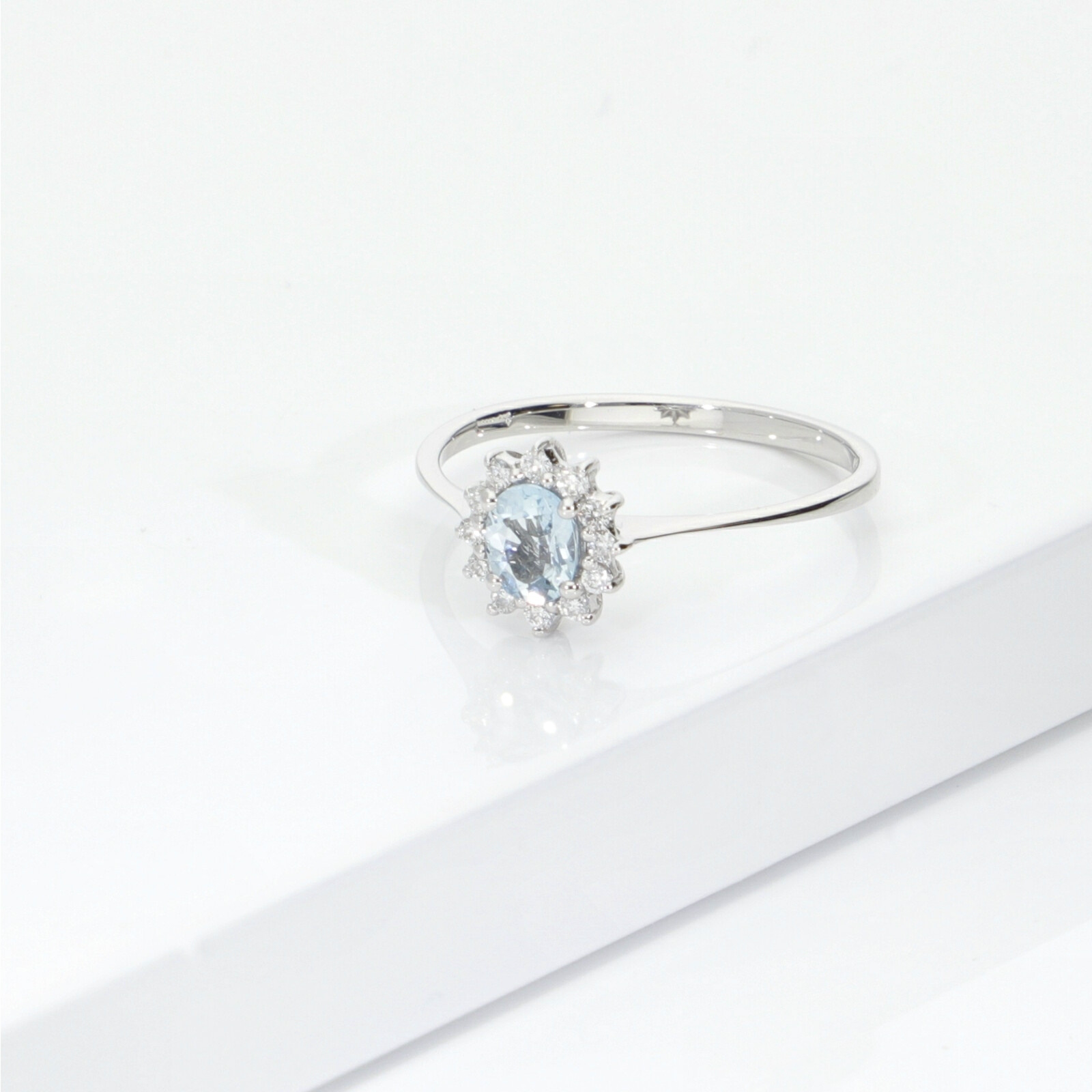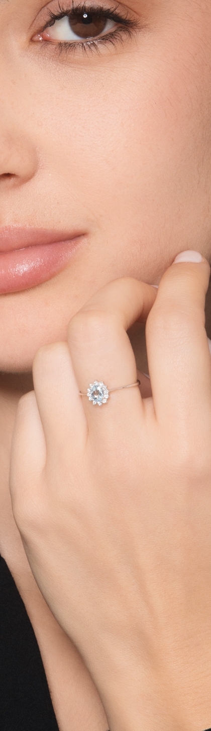 Halo Ring Diamanten und Aquamarin Weißgold