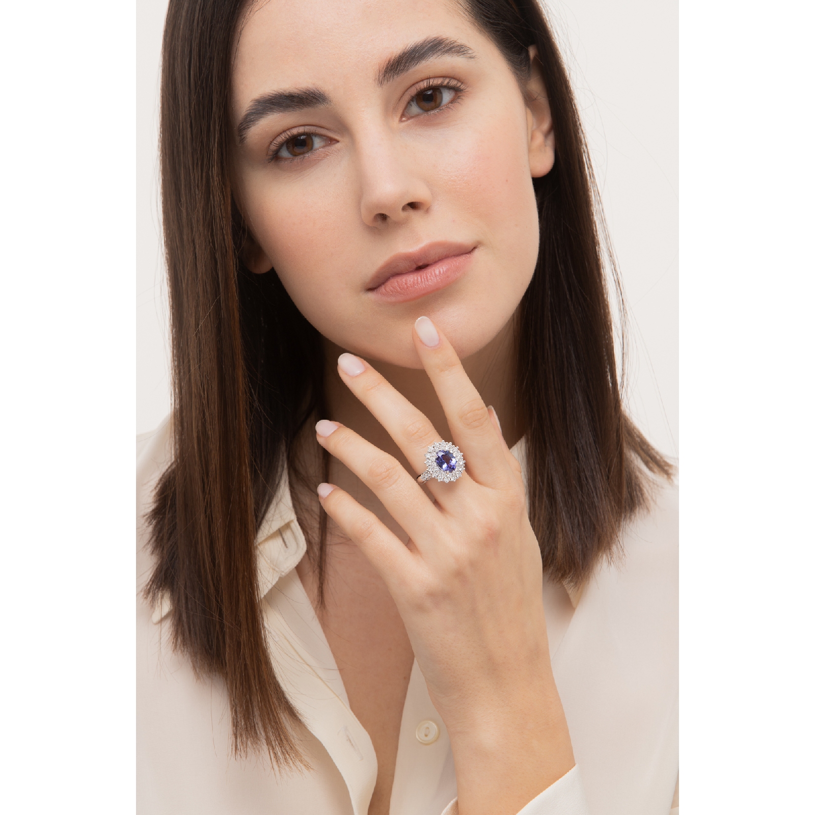 Halo Ring Tansanit Diamanten Weißgold 750