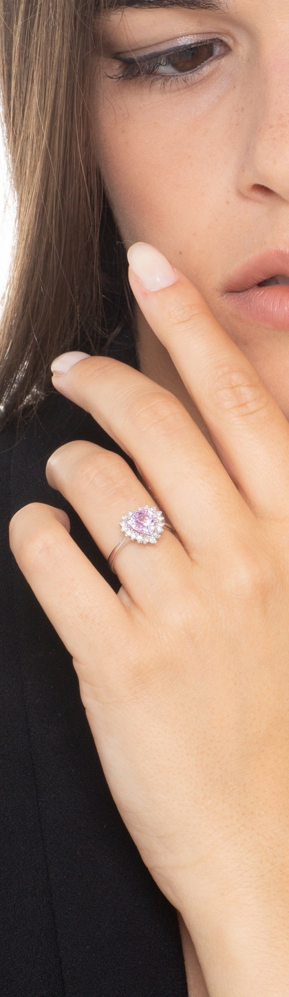 Rosa Saphir Herzring Weißgold 18k