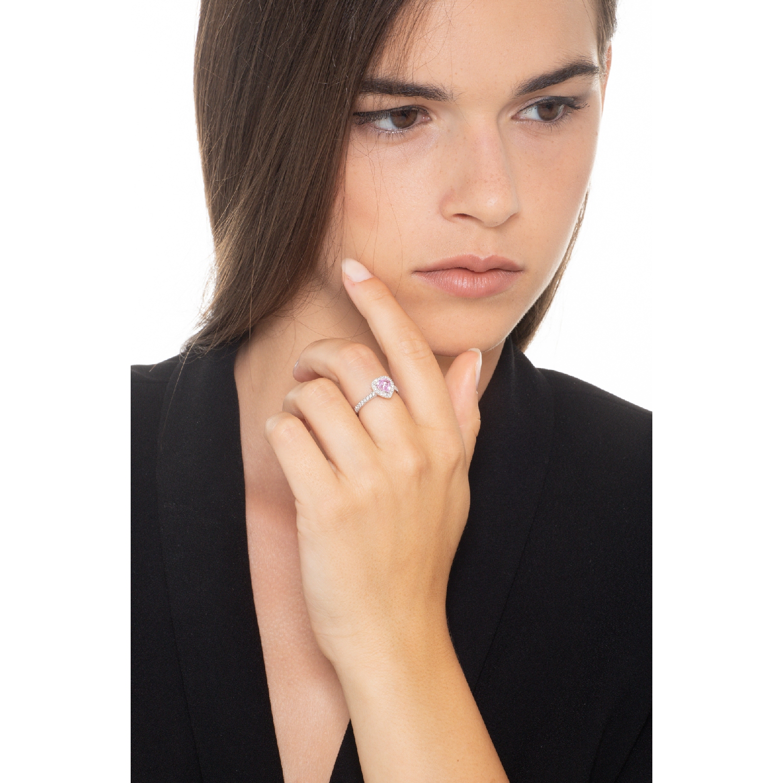 Rosa Saphir Verlobungsring Weißgold mit Diamanten