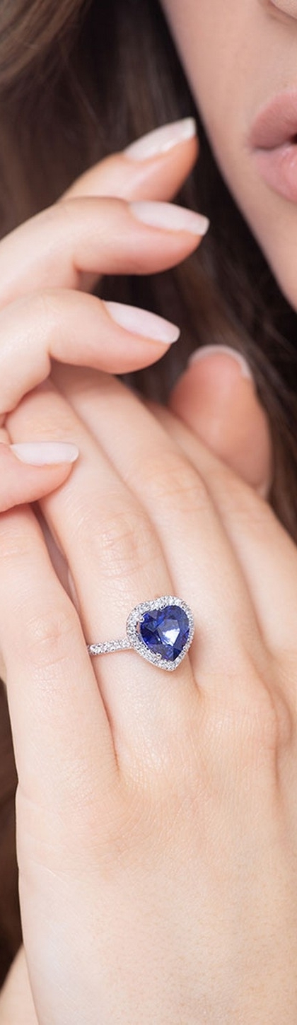 Saphir Herz Ring Weißgold mit Diamanten