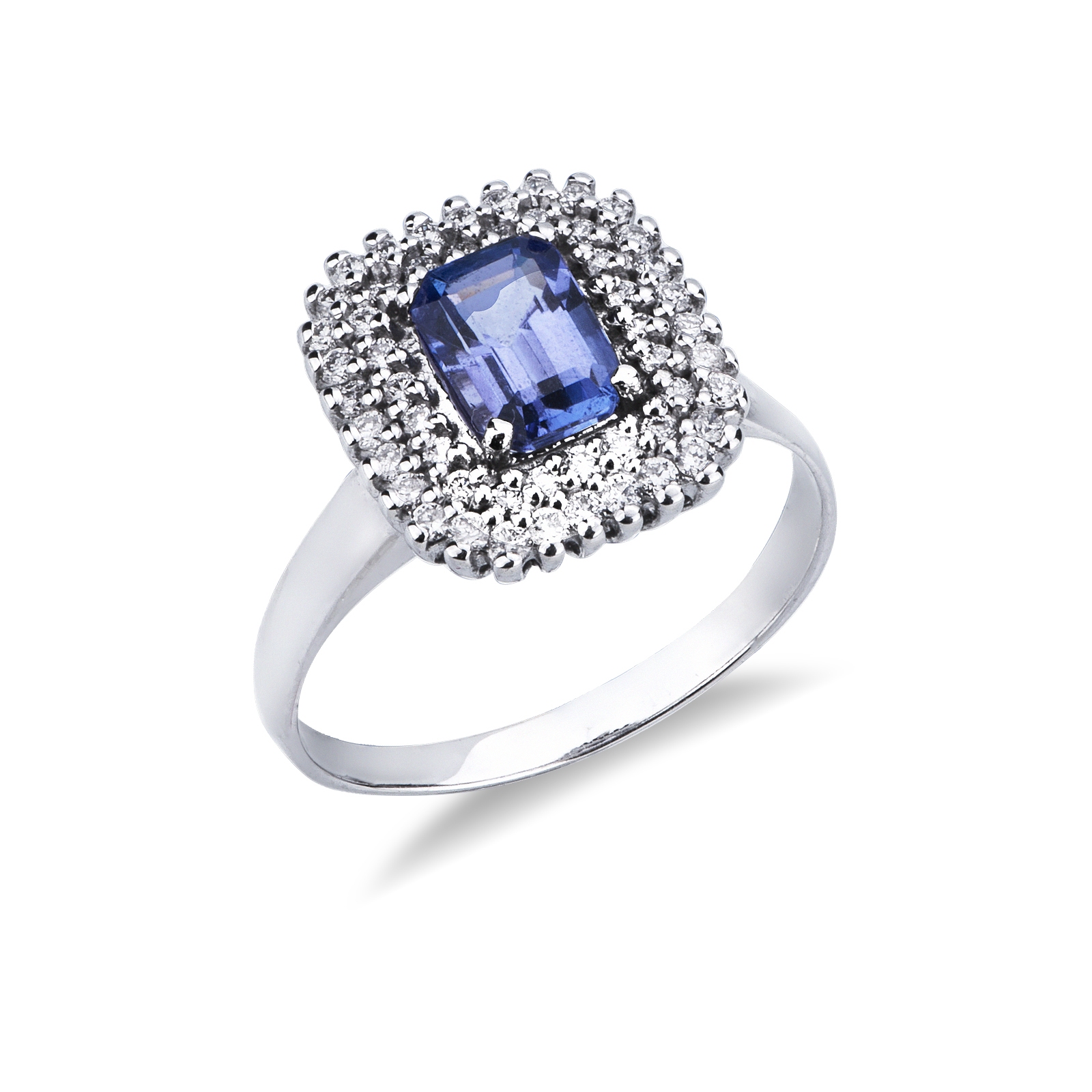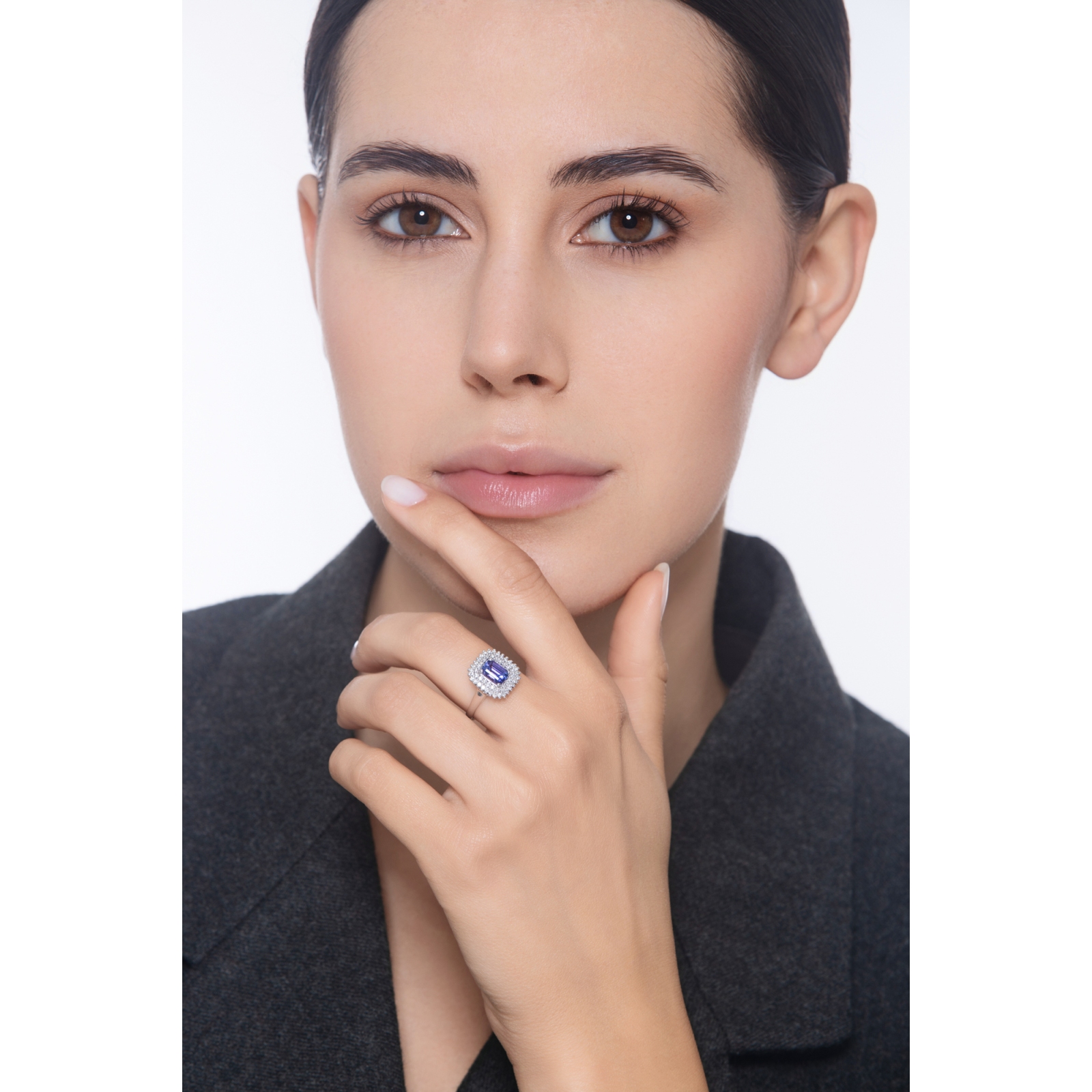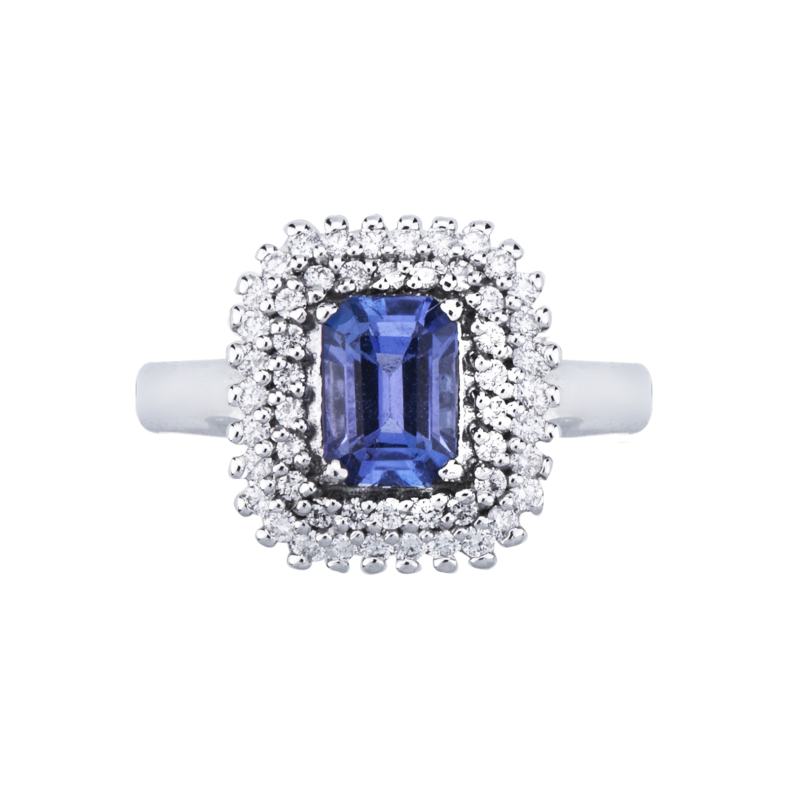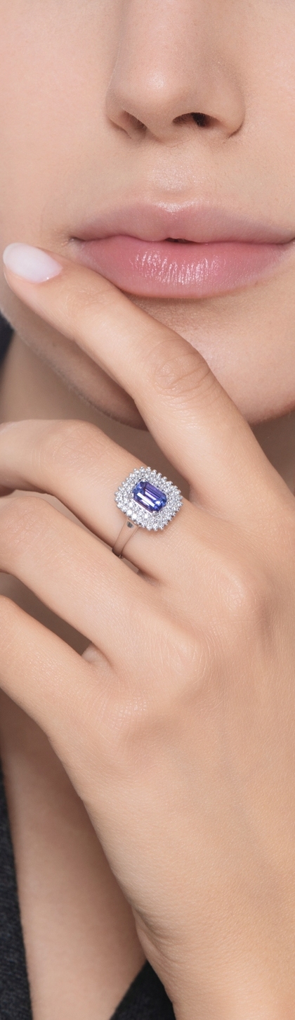 Tansanit Ring aus Weißgold 750 mit Diamanten