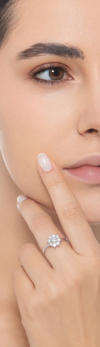 Weißgold 18K Blumenring Halo Ring