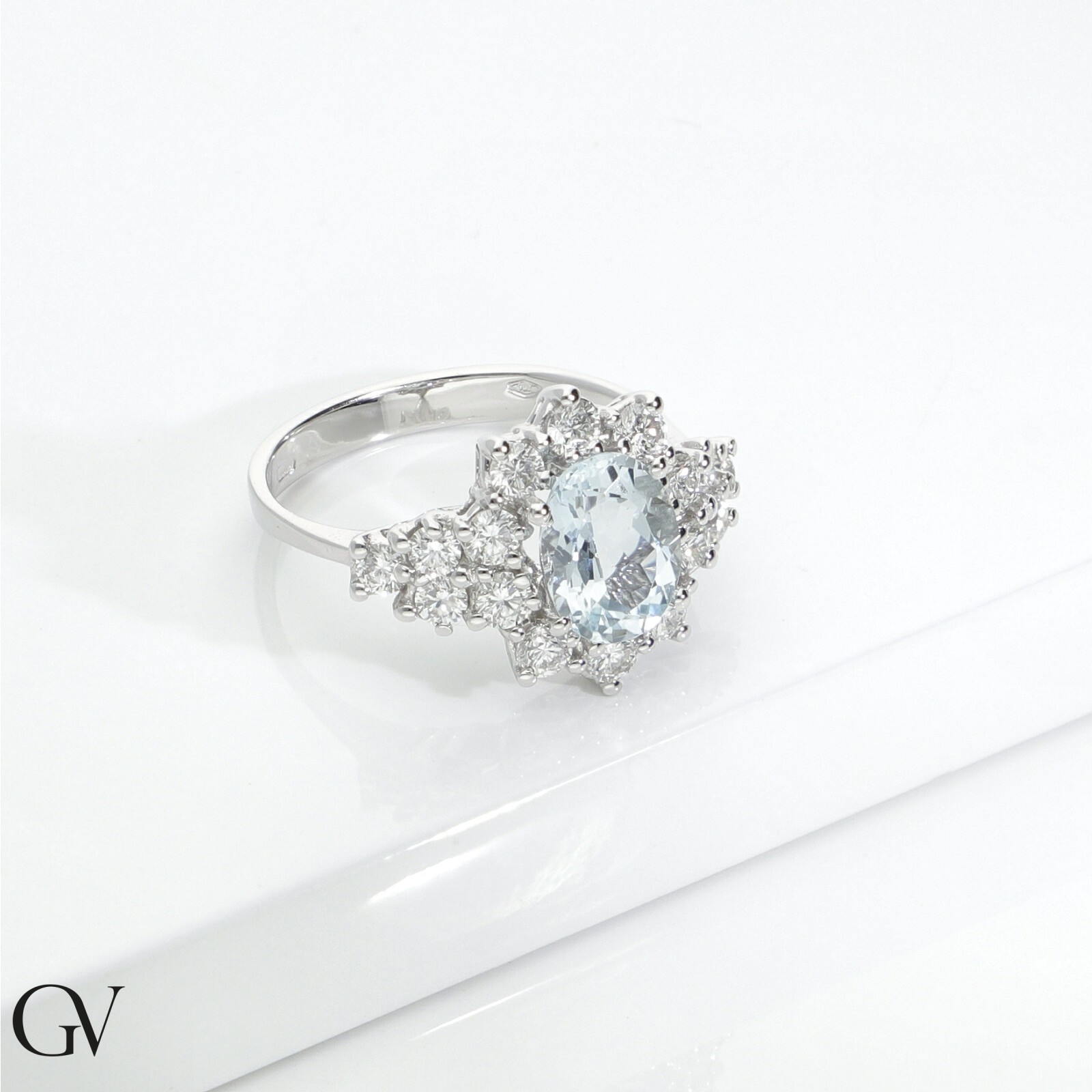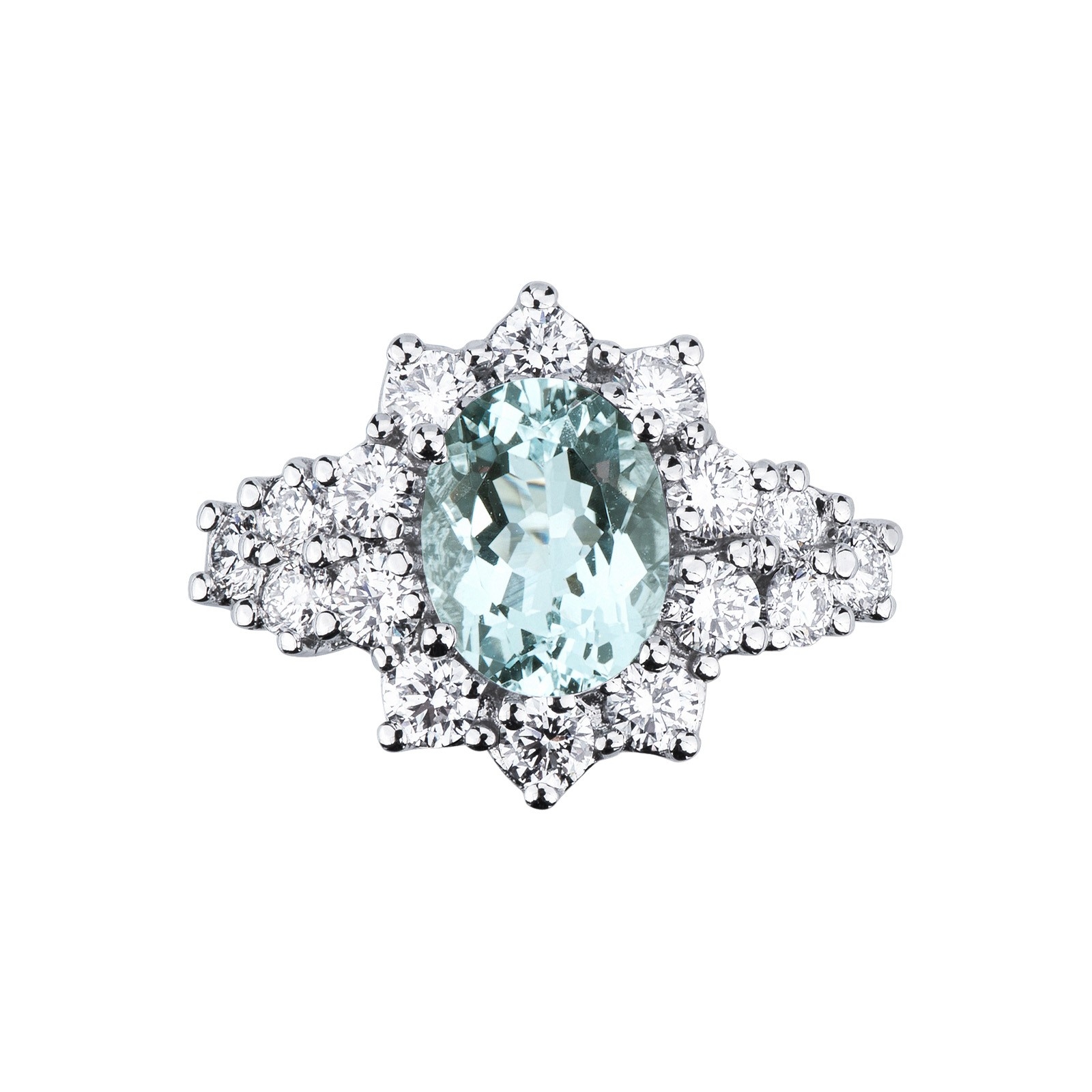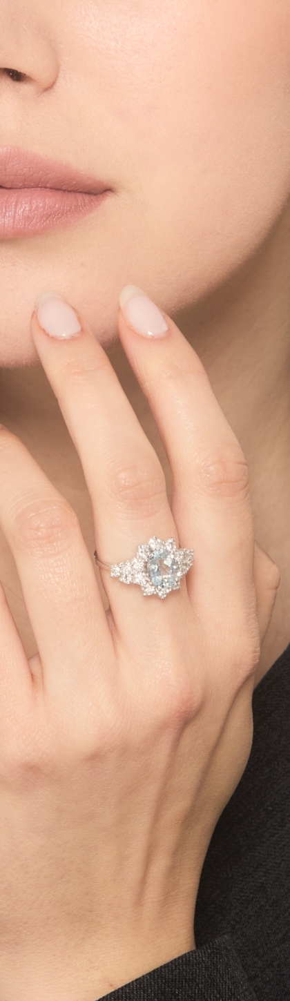 Weißgold 750 Aquamarin Ring Damen mit Brillanten