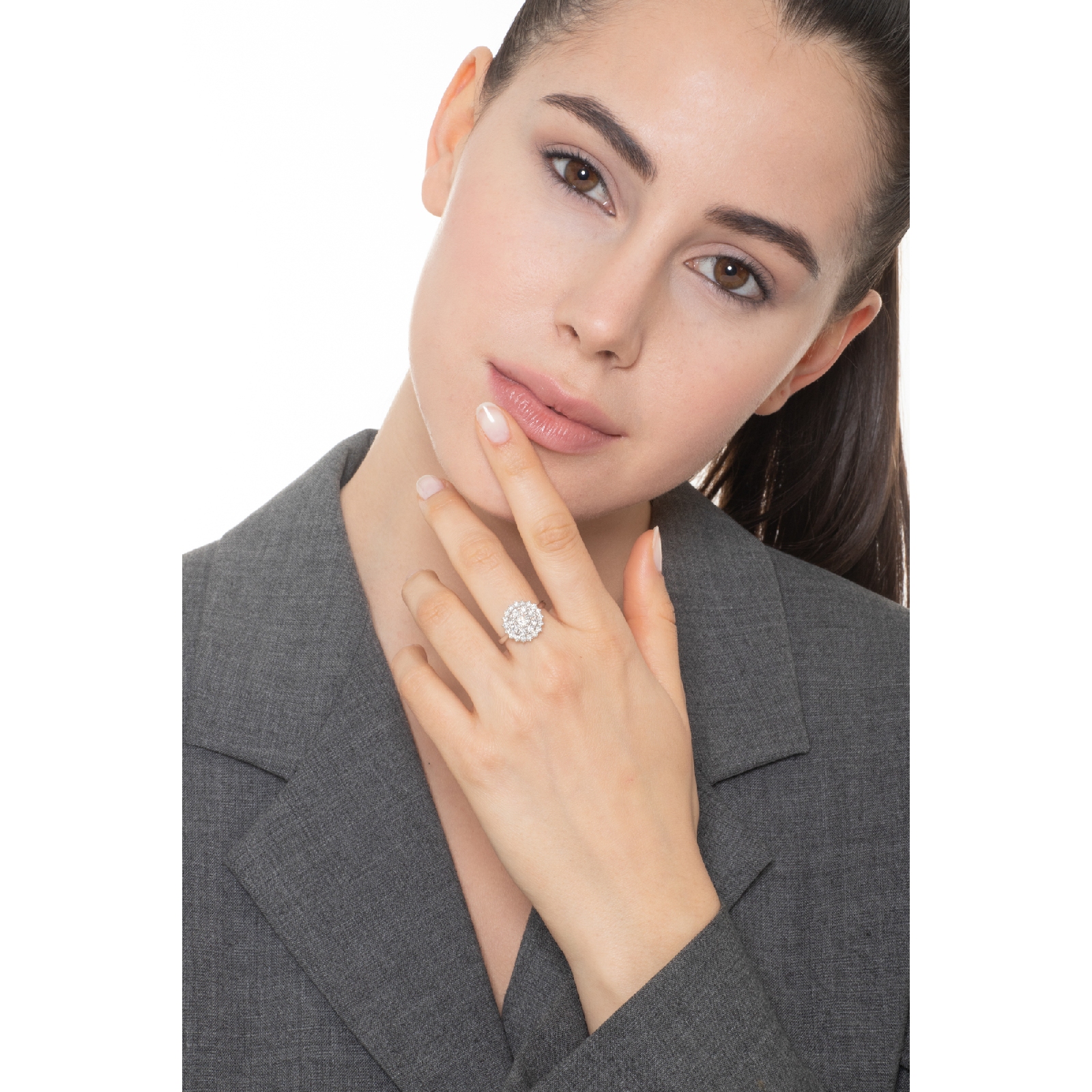 Weißgold Halo Ring mit Diamanten