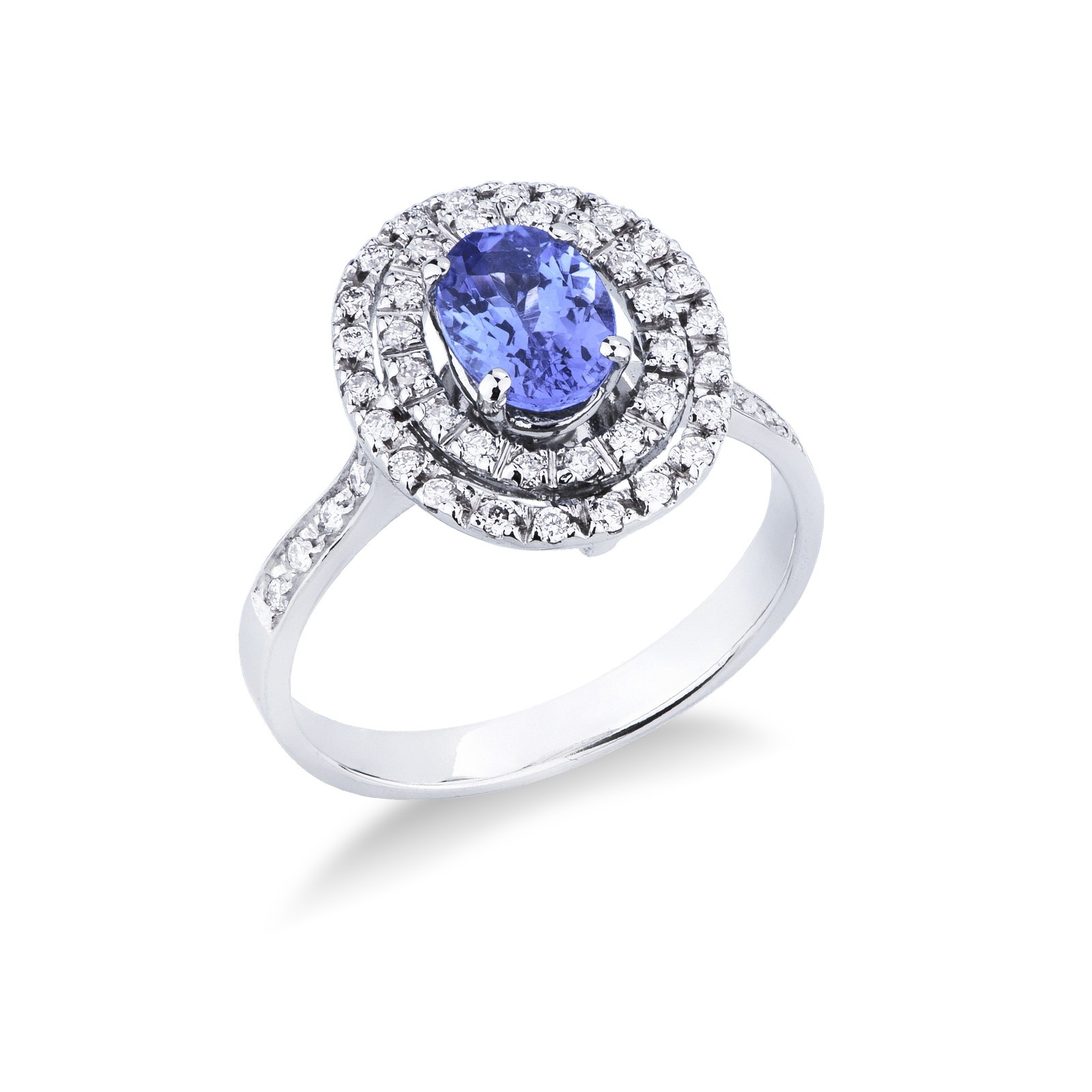 Weißgold Ring mit Diamanten und ovalem Tansanit