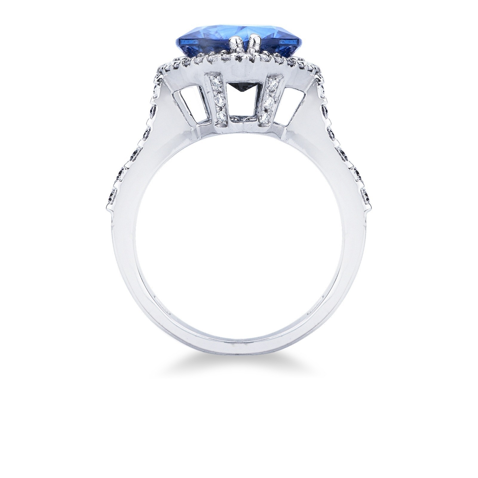 Weißgold Ring mit Herz aus blauem Saphir und Diamanten