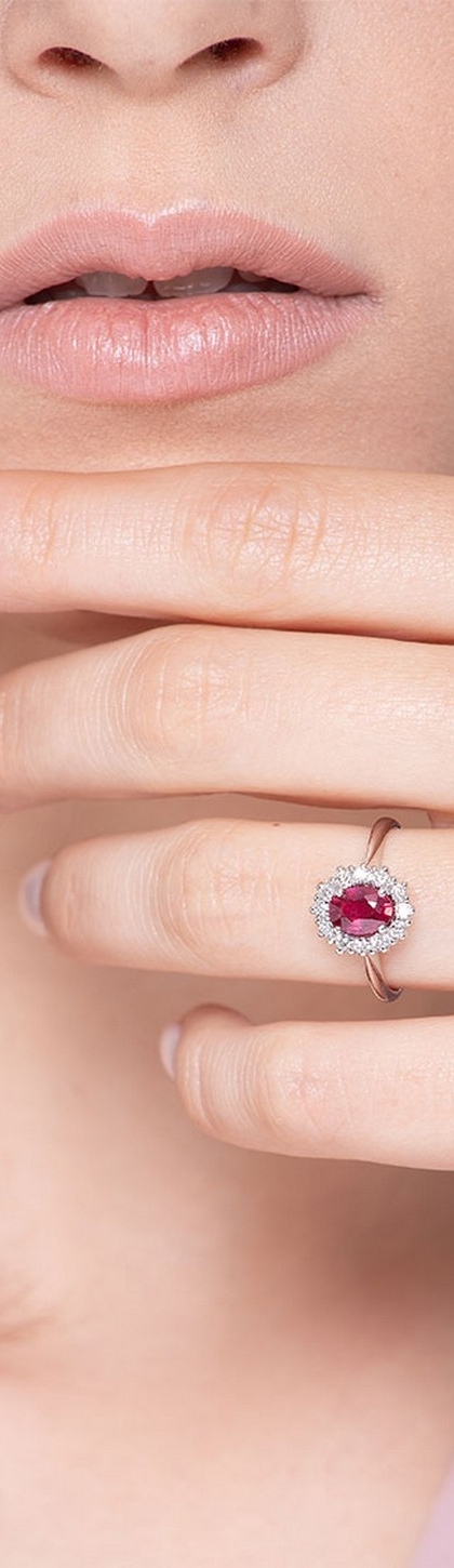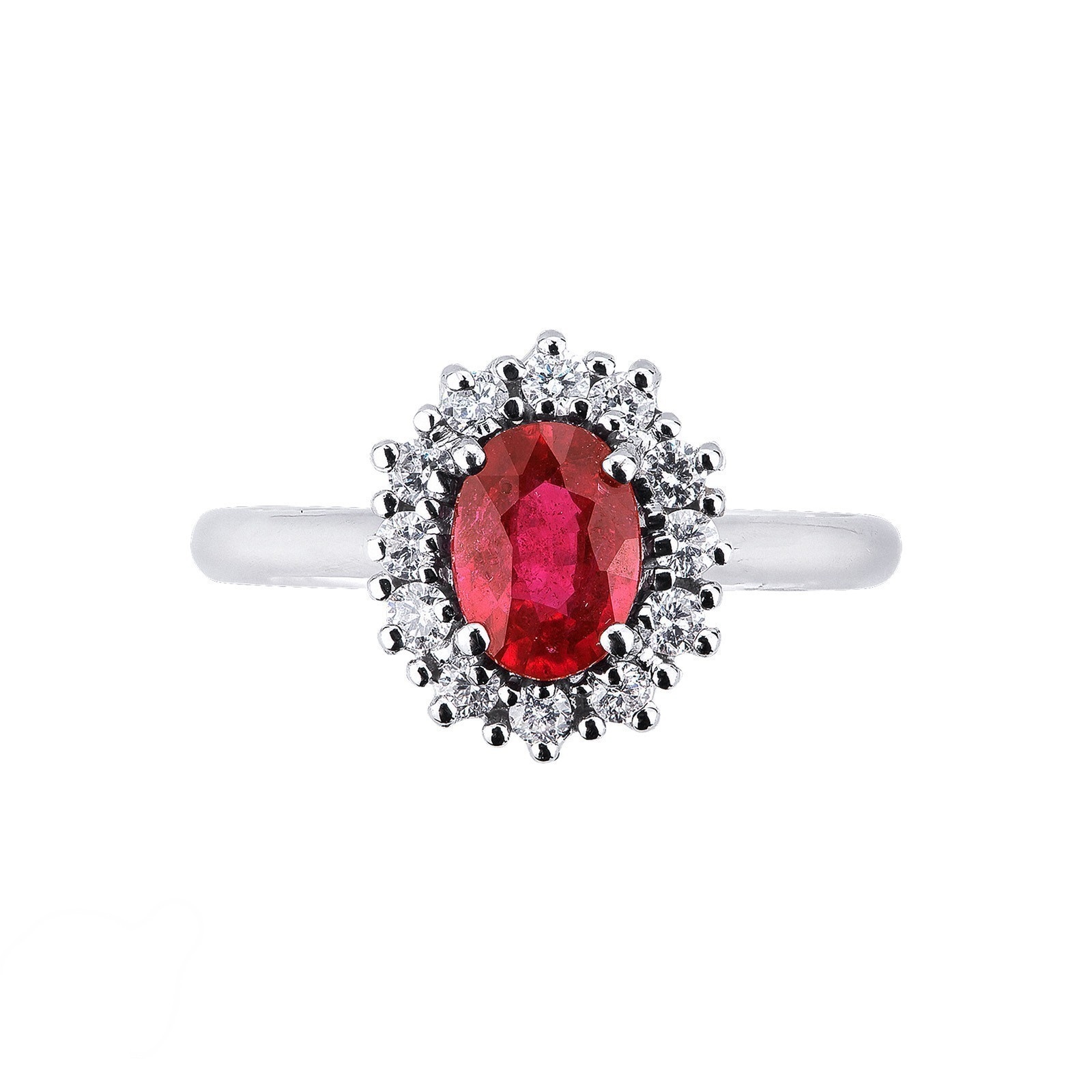 Weißgold Ring mit Rubinstein und Diamanten