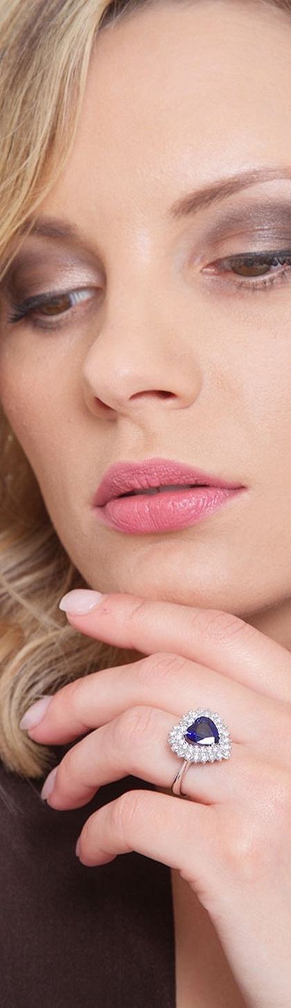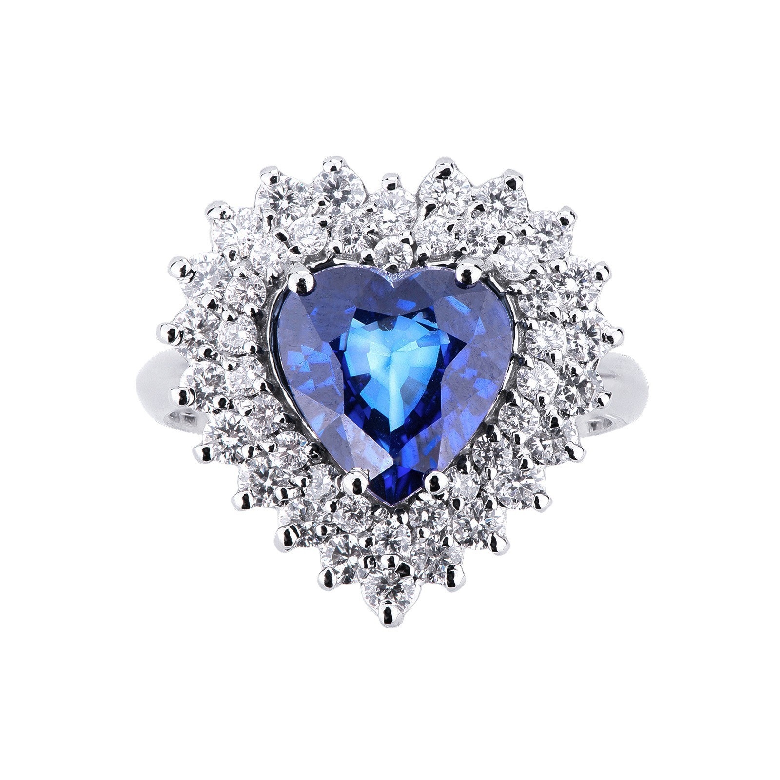 Weißgold Saphir blau Herz Ring mit Diamanten