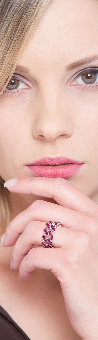 Iced Out Ring mit Rubinen