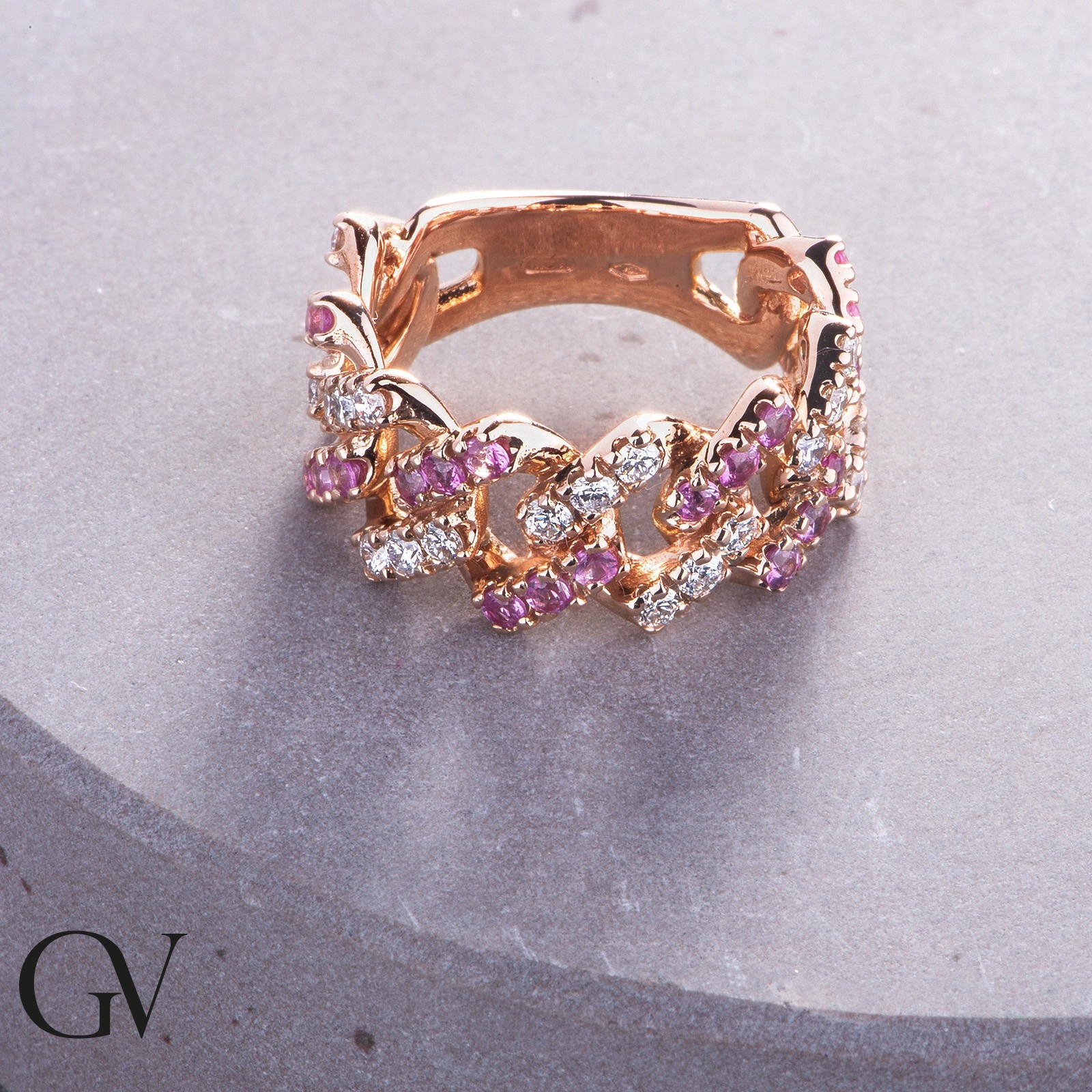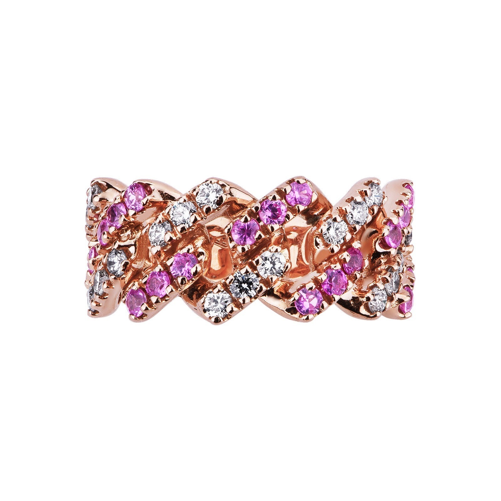 Roségold 18K Cuban Link Iced Out Ring rosa Saphiren Diamanten