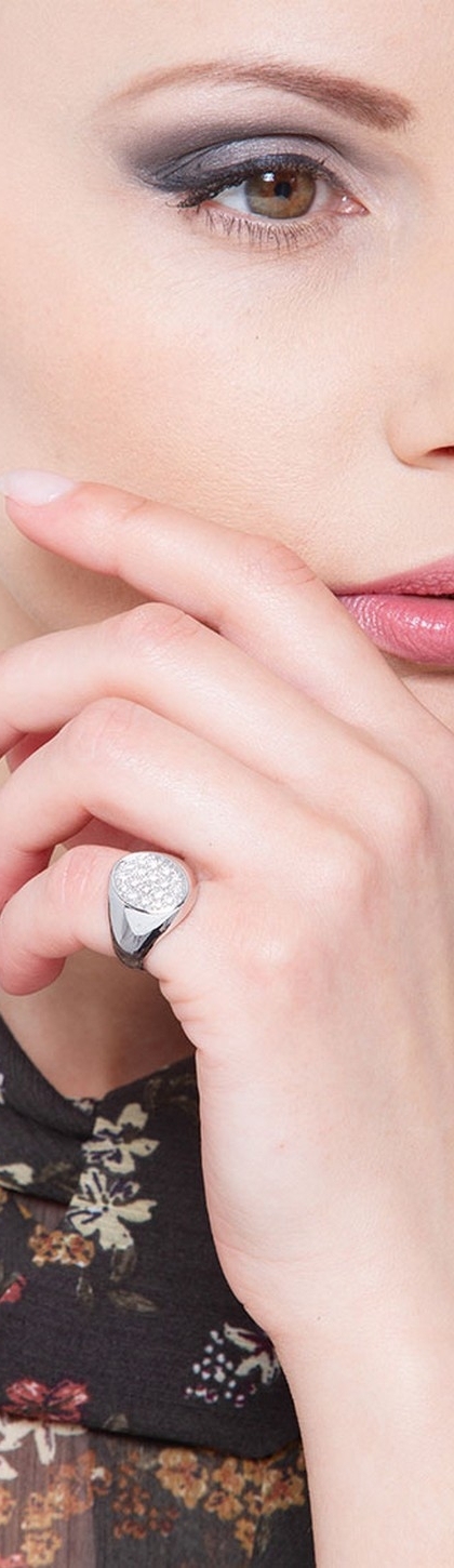 Kleiner Finger Ring mit ovalem Pavé aus Diamanten, Farbe H, Reinheit VS, Brillantschliff.