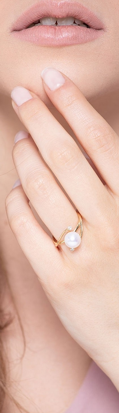 Perlenring aus Gelbgold 18K mit Diamanten