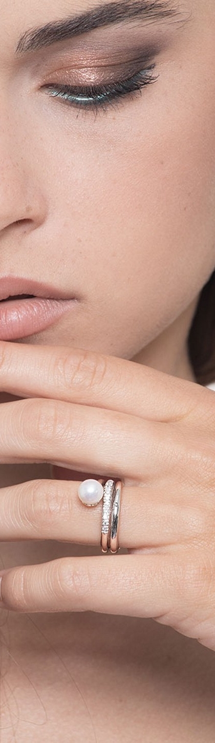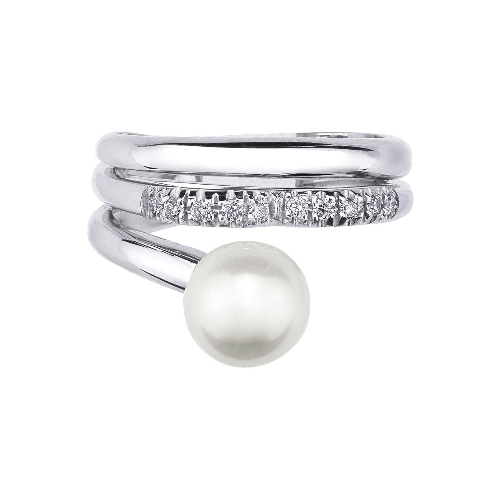 Weißgold Ring mit Perle und Diamanten