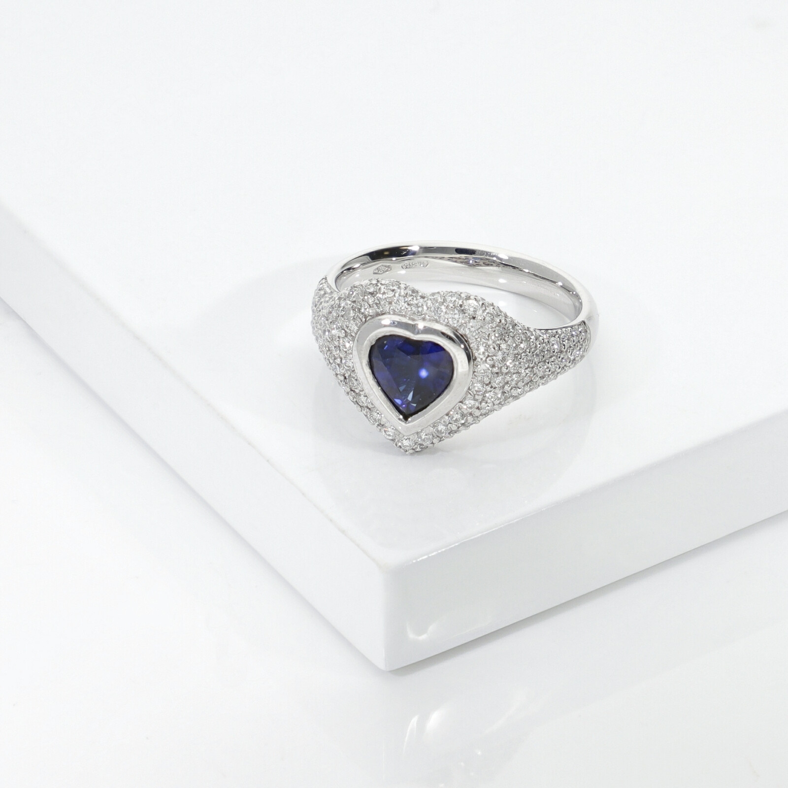 Damen Siegelring Weißgold Saphir blau und Diamanten