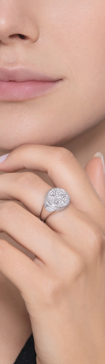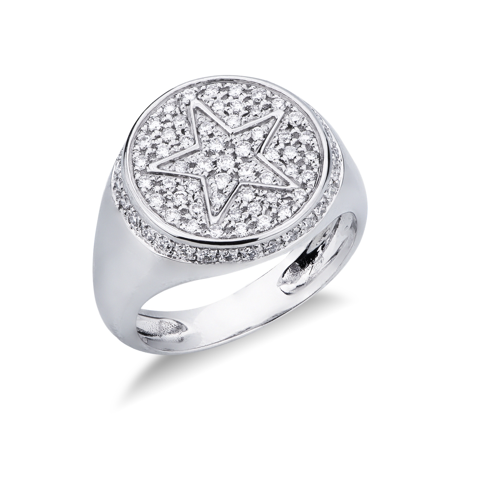 Weißgold 18K Siegelring Damen mit Stern aus Diamanten