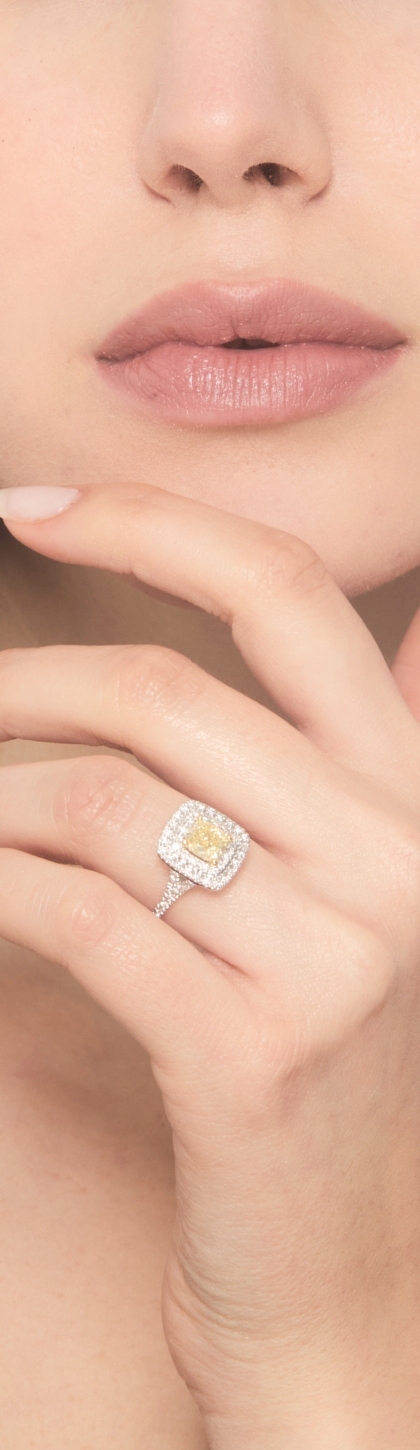 Diamantring mit gelbem Fancy Diamanten 1.16 kt GIA aus Weißgold 18K
