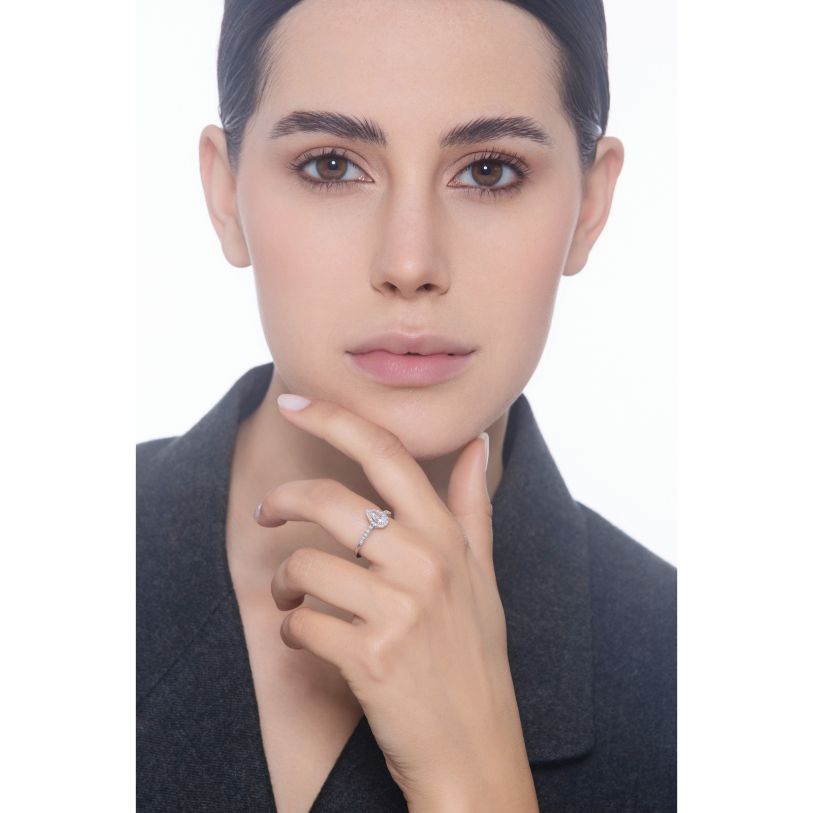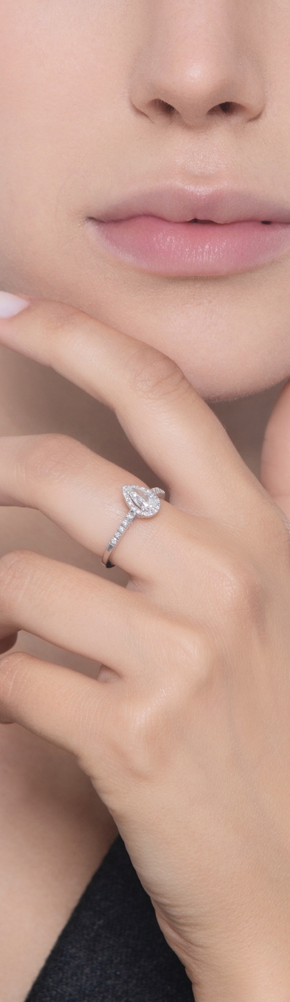 Solitär Ring aus Weißgold 18k mit Diamant Tropfenschliff GIA 0.50kt