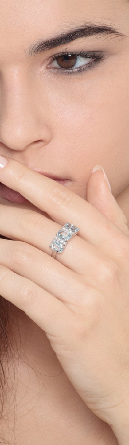 Damenring Weißgold 18k mit Diamanten und Aquamarin