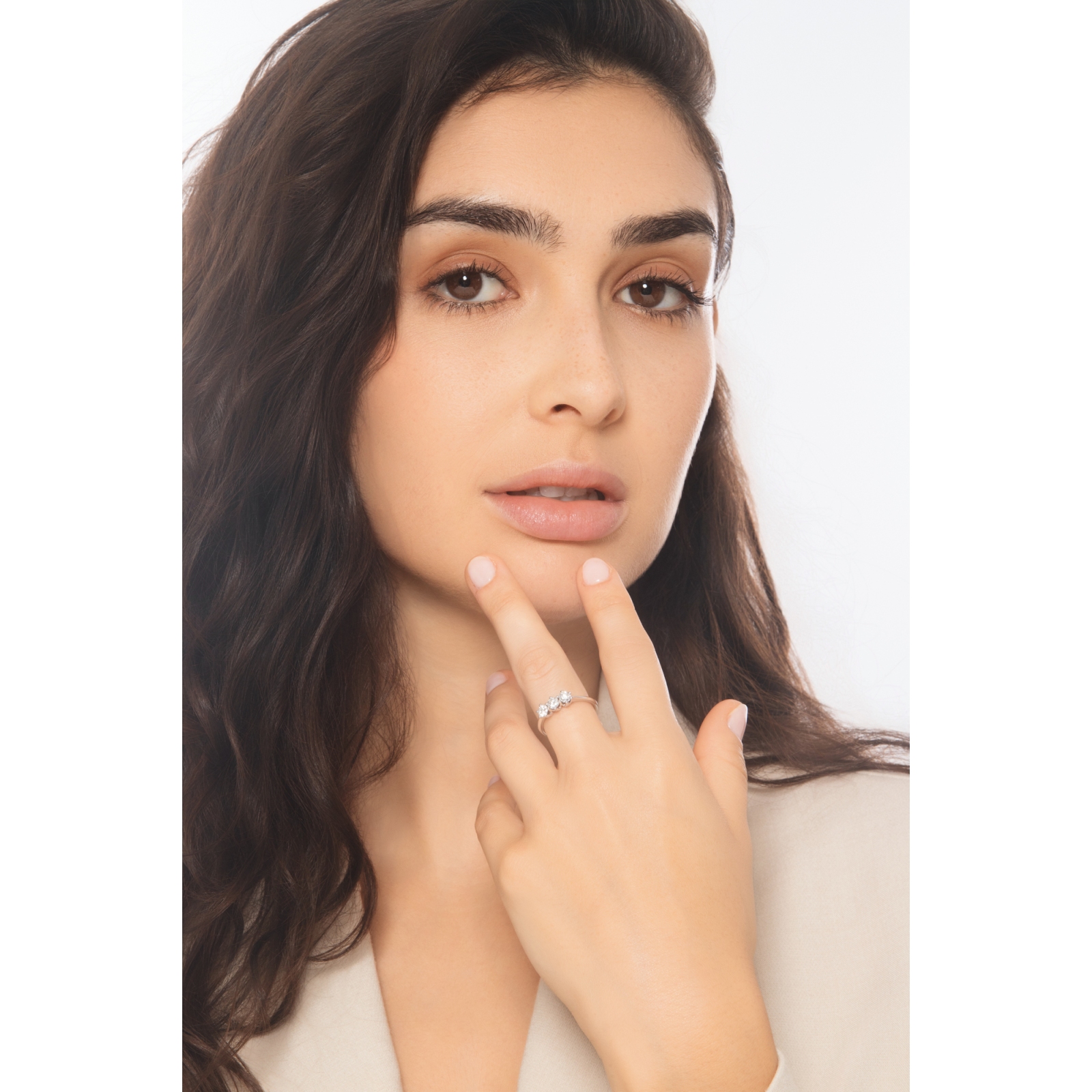 Drei Diamanten Damenring Weißgold 750