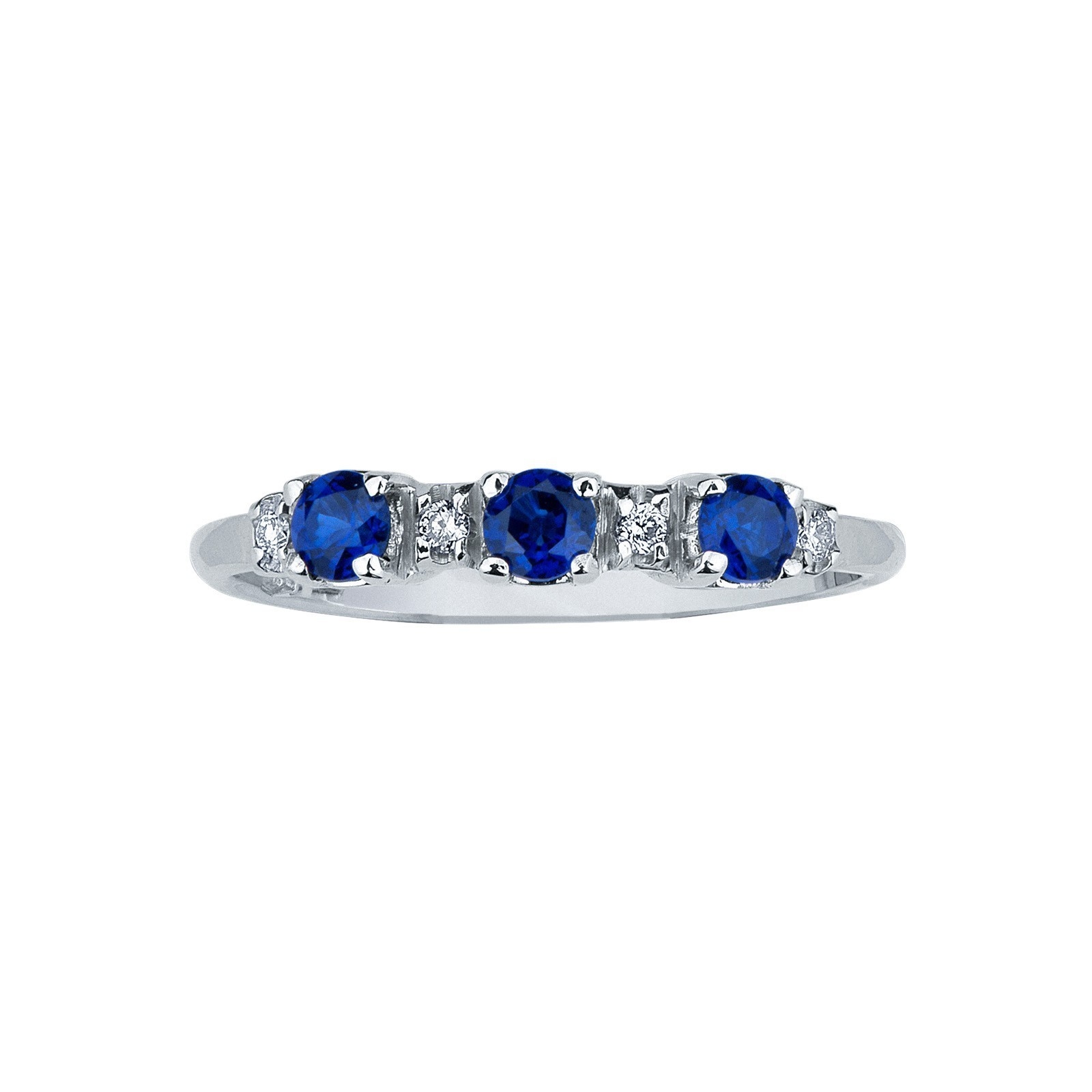 Trilogie Damenring aus Weißgold mit blauen Saphiren und Diamanten