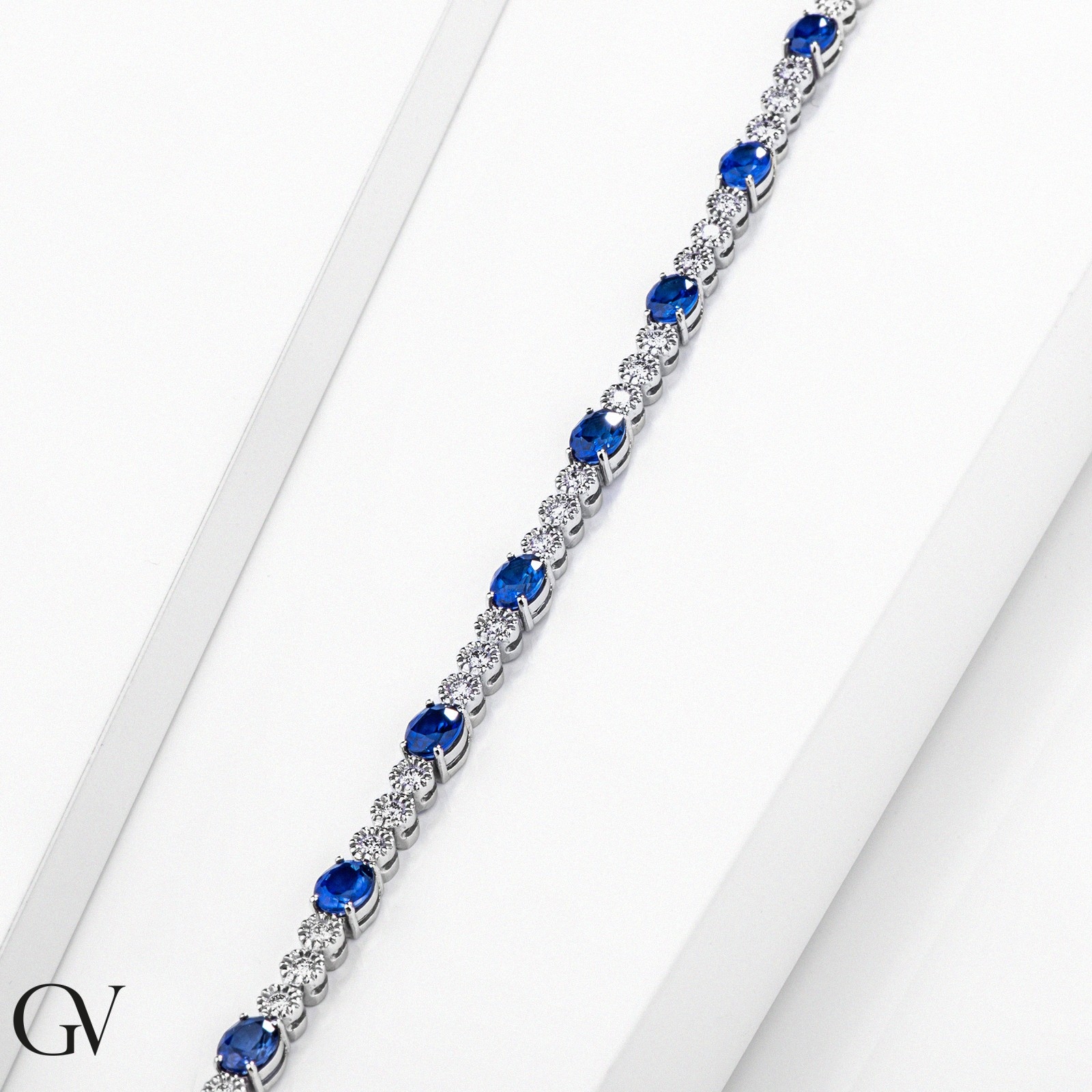 Damenarmband Weißgold mit blauen Saphiren und Brillanten