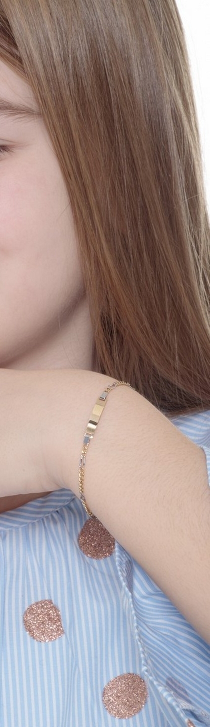 Weissgold Gelbgold Armband mit Gravurplatte, 16 cm