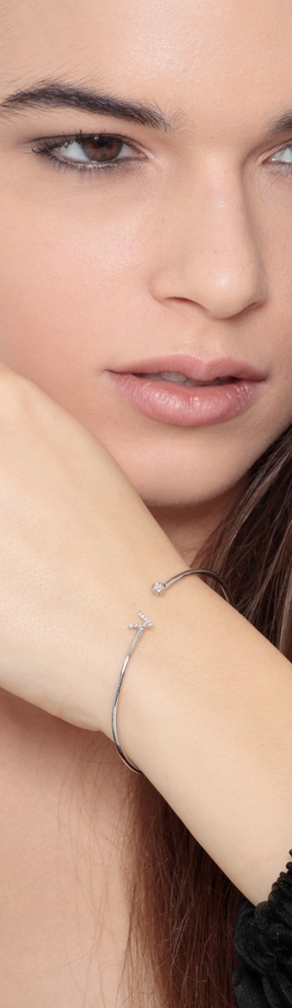 Armreif Buchstabe V mit Diamanten Weißgold 18k