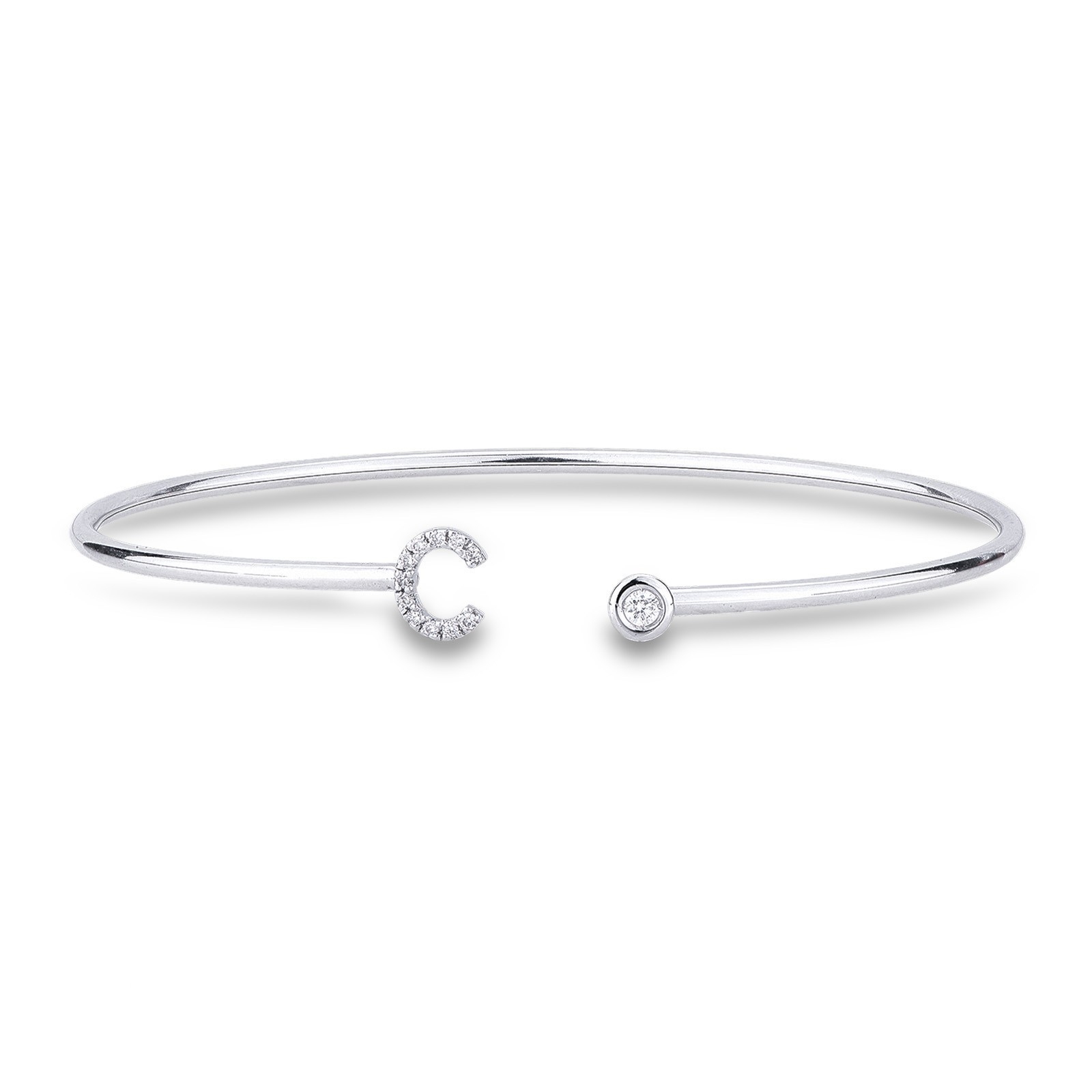 Armreif mit Buchstabe C aus Weißgold mit Diamanten