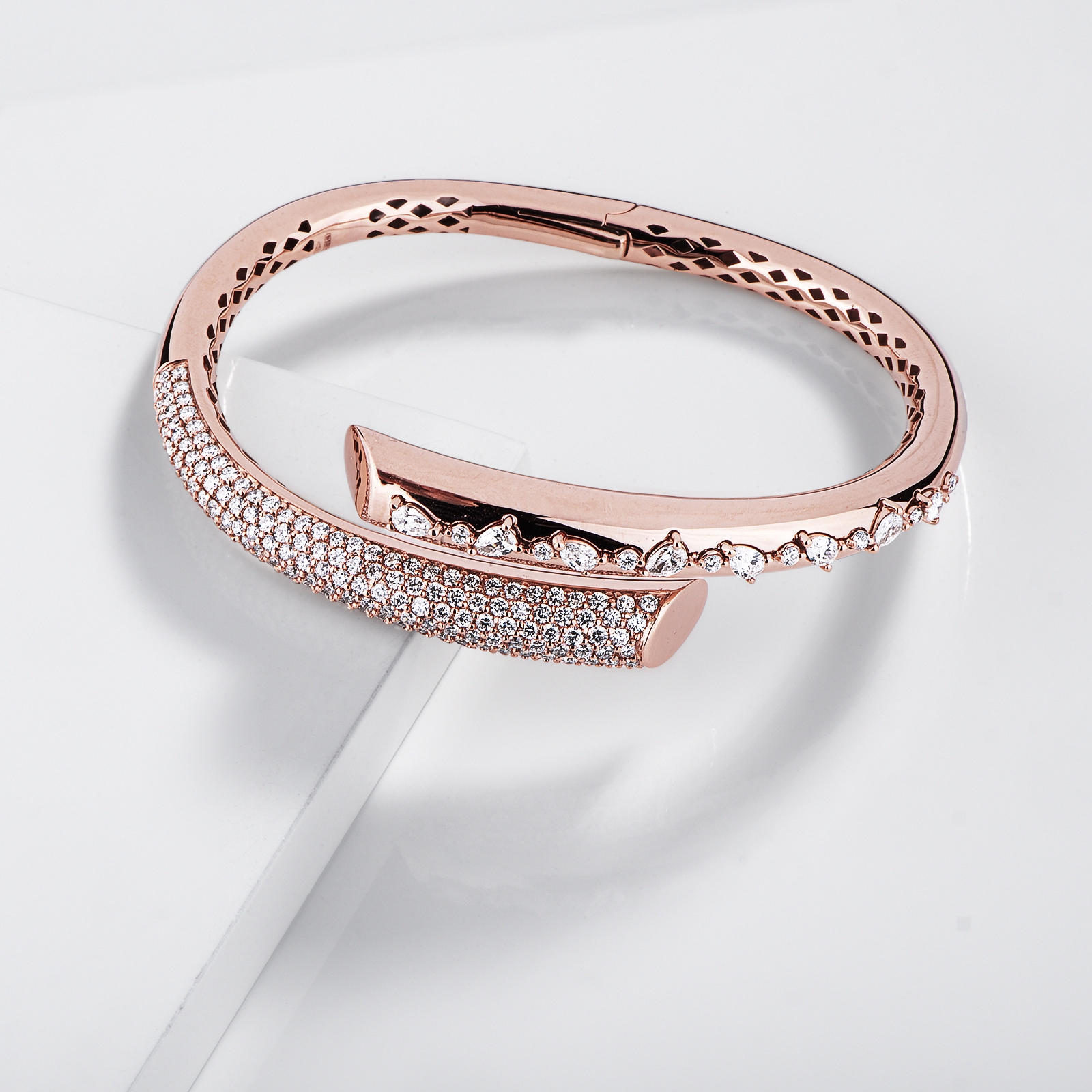 Mit einem Durchmesser von 5,5 cm kann das Armband wunderbar mit schlichteren Modellen kombiniert oder einzeln getragen werden – ideal für Frauen mit raffiniertem und anspruchsvollem Stil.