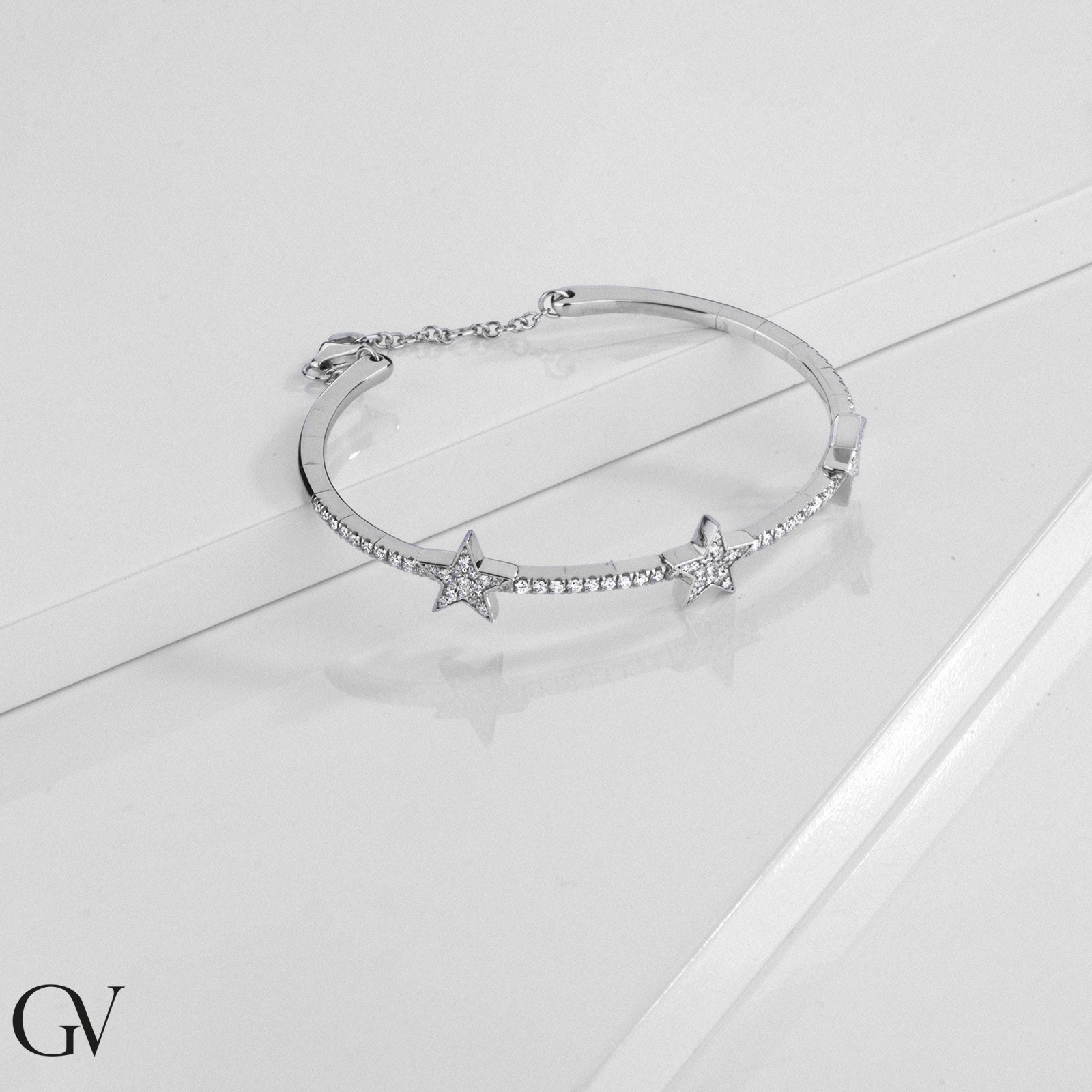Weißgold Armreif mit drei Sternen aus Diamanten