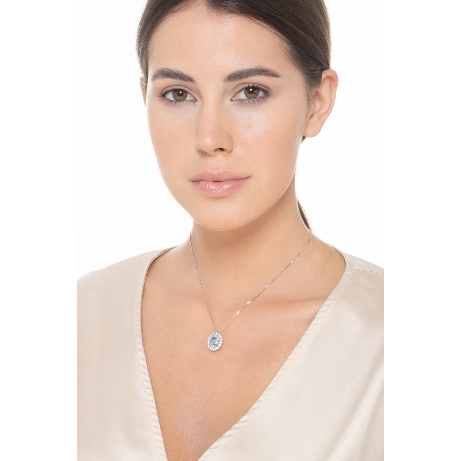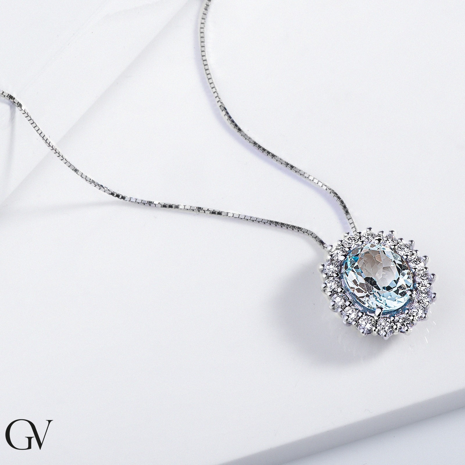 Aquamarin Kette mit Diamanten Weißgold 18K