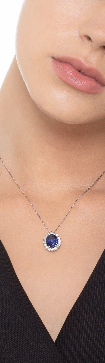 Halo Halskette Weißgold 18k mit Saphir und Diamanten