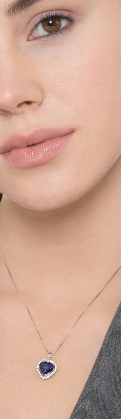Herz Anhänger aus blauem Saphir und Diamanten in Weißgoldkette