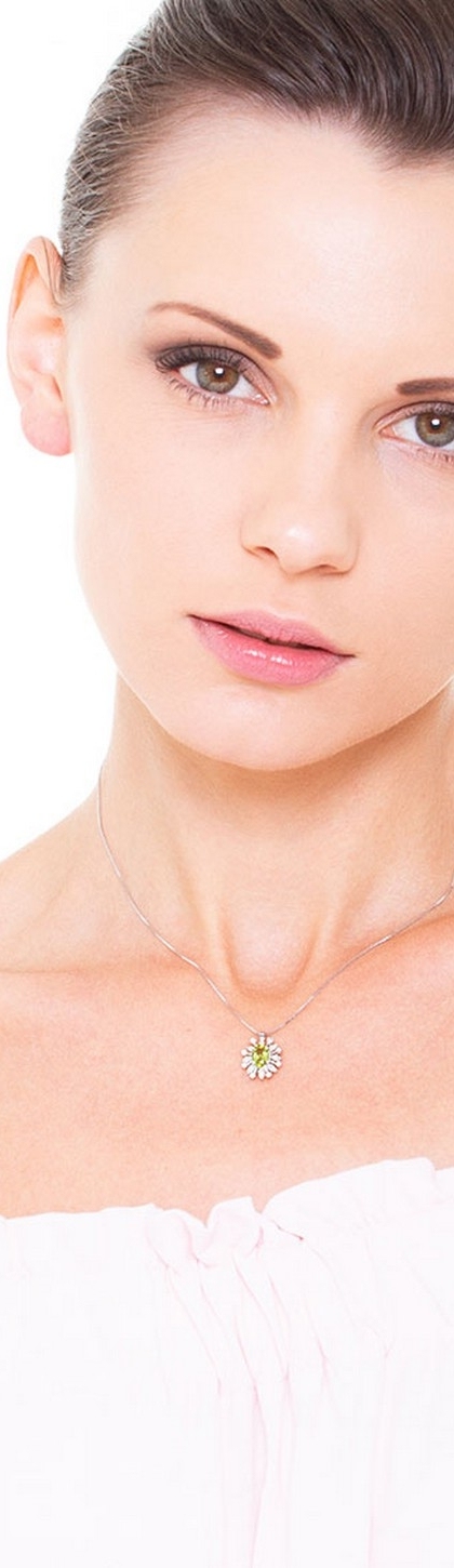 Peridot Anhänger mit Diamanten in Weißgold Kette