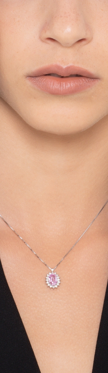 Rosa Saphir Anhänger Weißgold Kette mit Brillanten