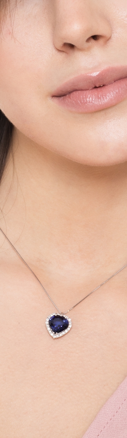 Saphir Herz Kette Weißgold mit Diamanten
