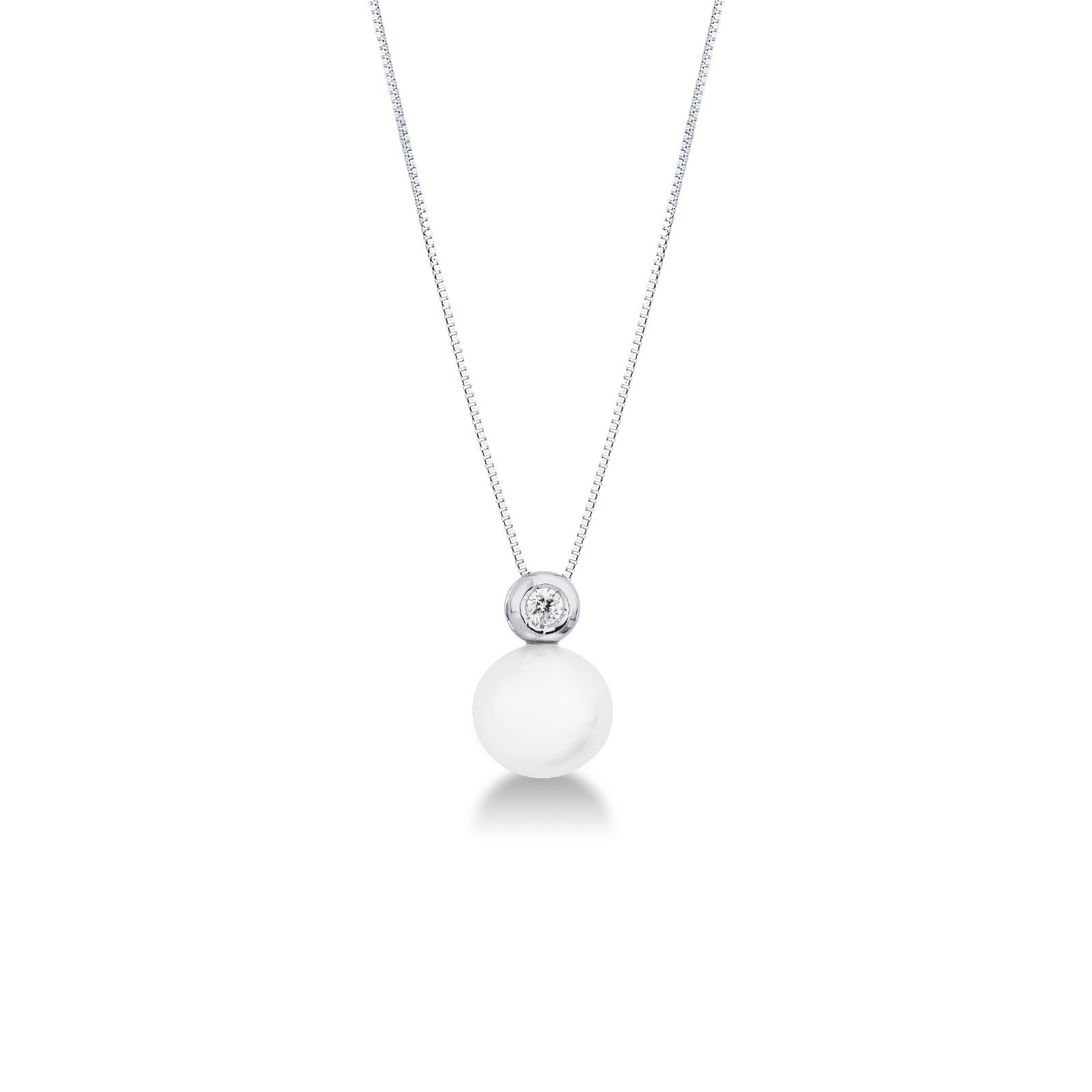 Weißgold 750 Damenkette mit Perle und Diamant