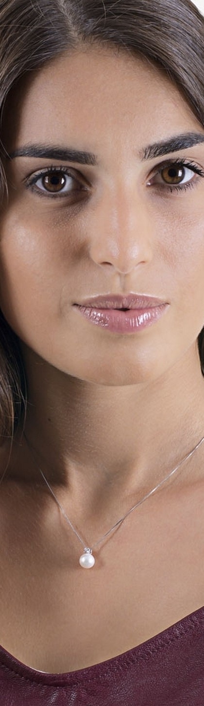 Weißgold Kette mit Perle und Diamanten Damen